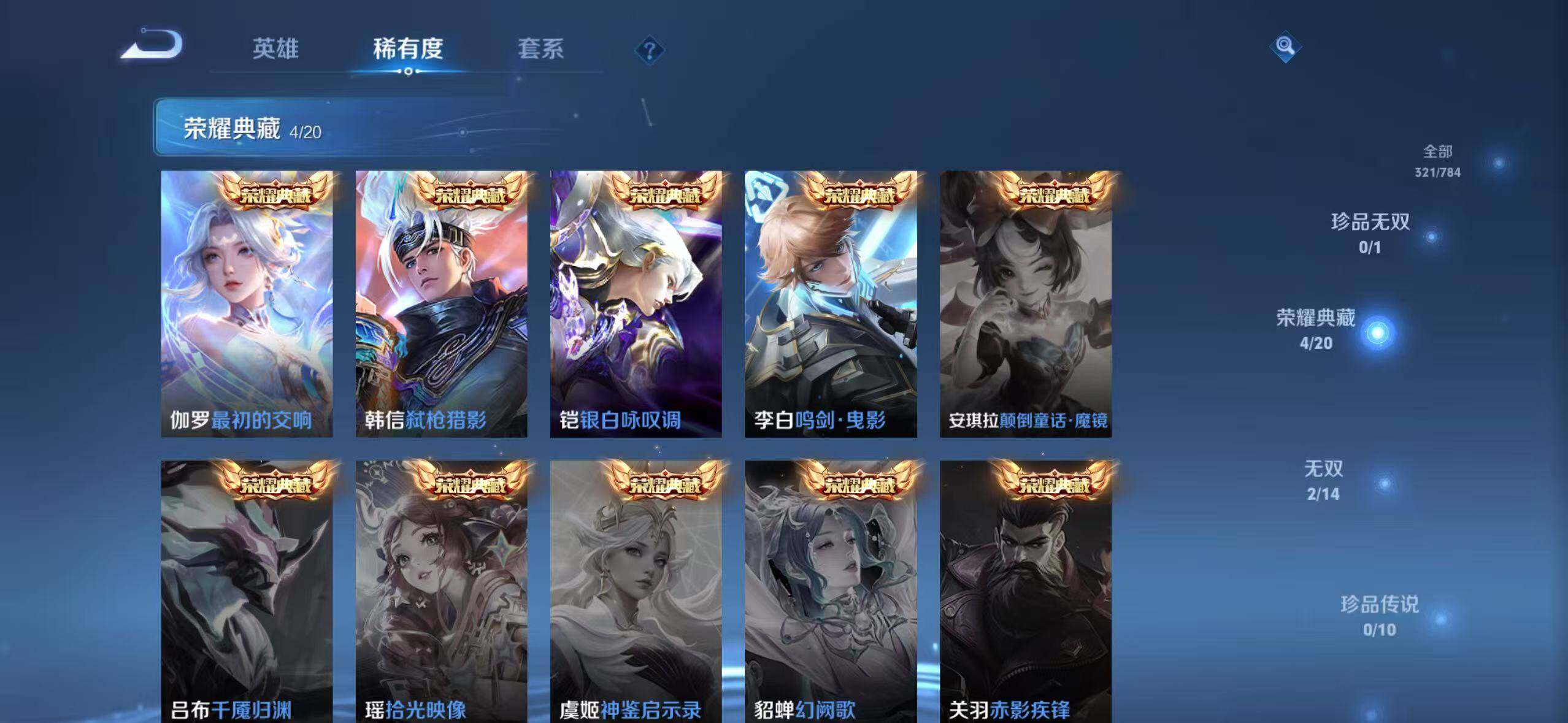 【荣耀典藏】:李白鸣剑曳影,铠银白咏叹调,韩信弑枪猎影,伽罗最初的交响