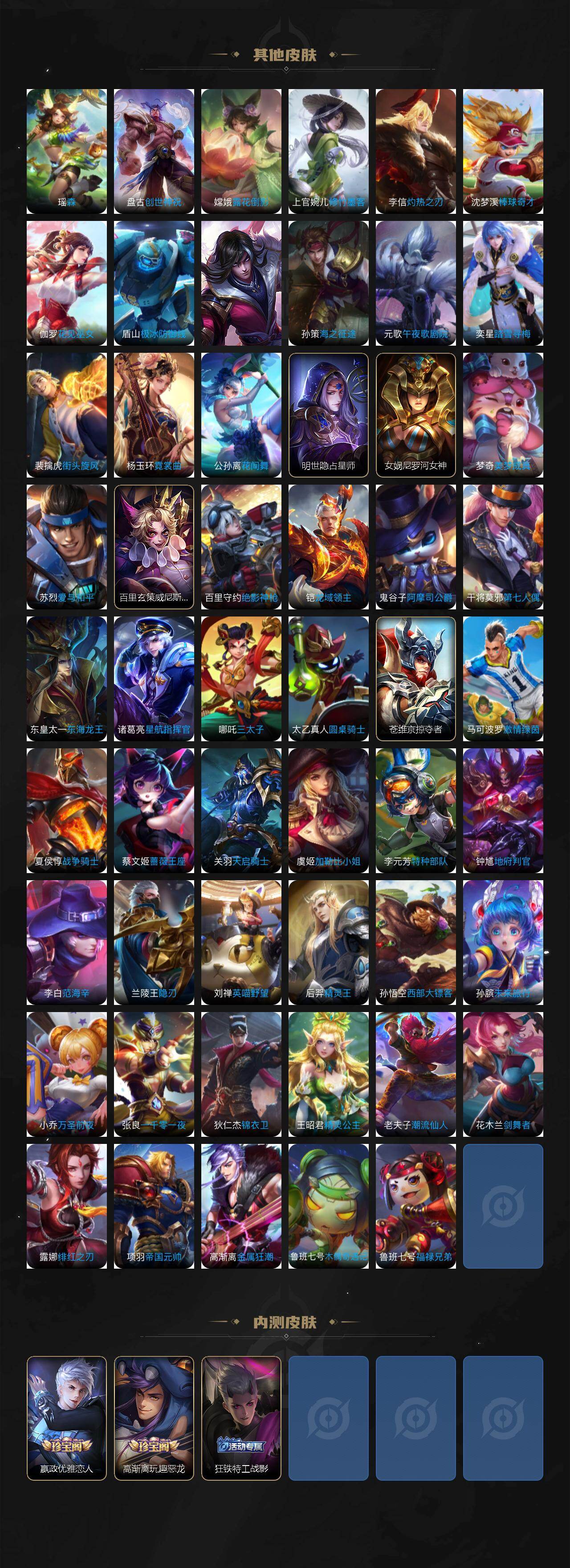 【英雄全皮】:司马懿全皮,孙权全皮,敖隐全皮,鲁班大师全皮,蒙恬全皮,澜全皮
