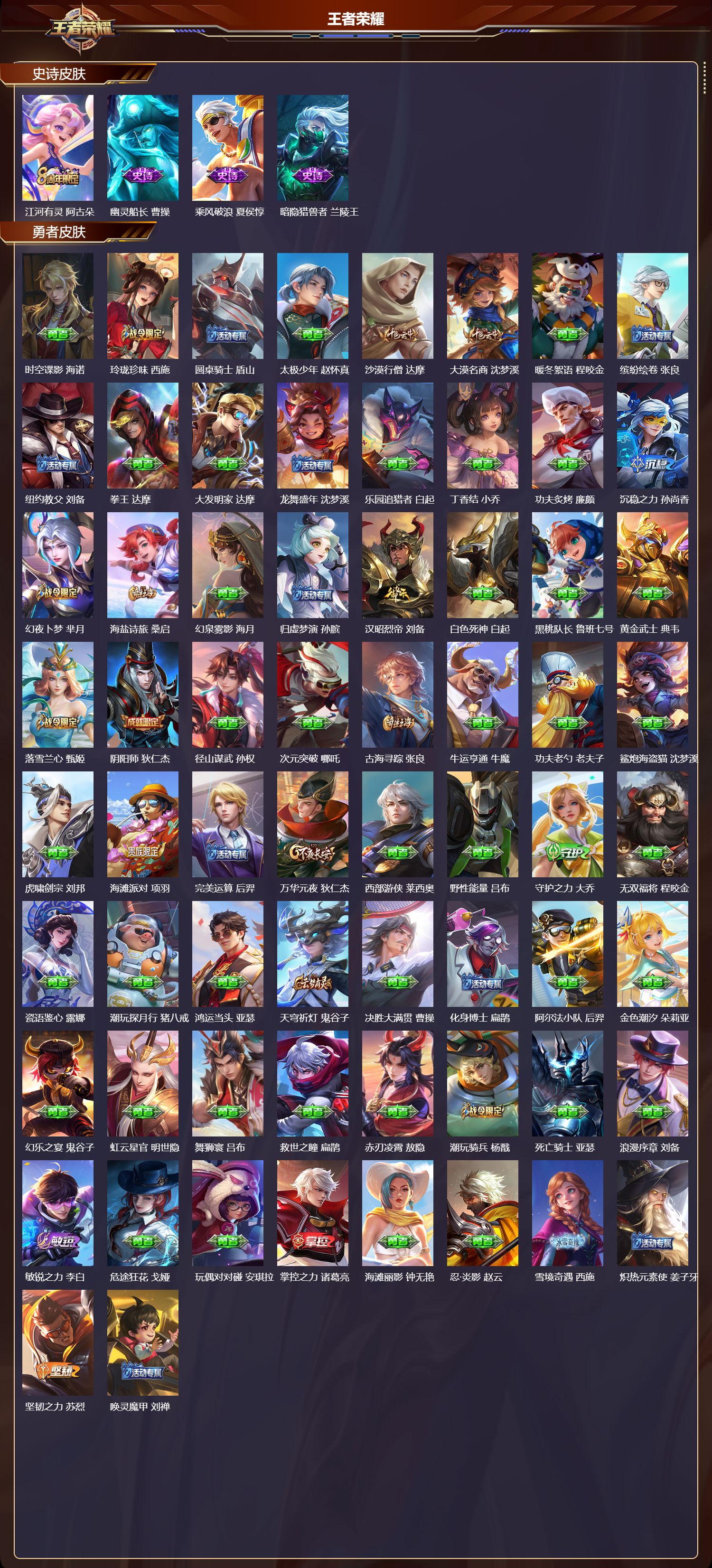 最强王者/320皮肤/128英雄/3典藏/0珍品无双/2无双/0珍品传说/39传说/100史诗/9稀有英雄