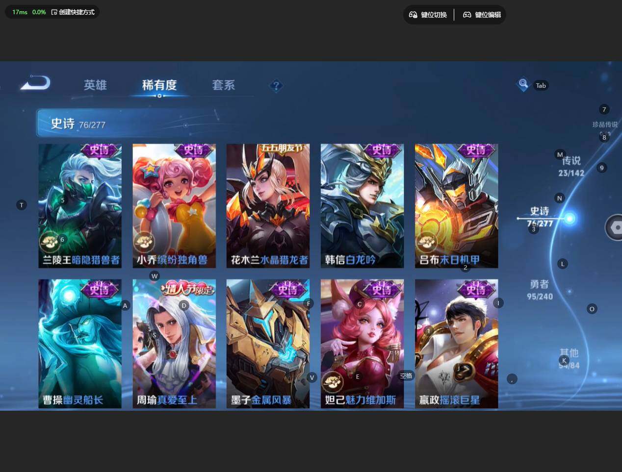 7/苹果WX-V8-最强王者段位-128英雄-252皮肤-4典藏皮肤-23传说-75史诗