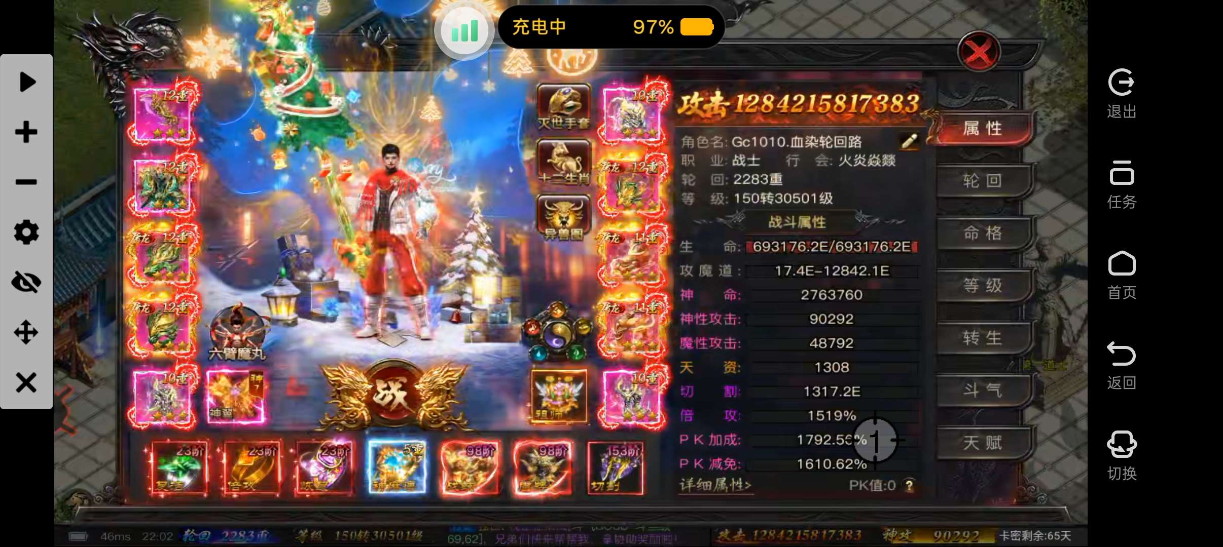 1.3万亿攻击1万真伤!理财满!十倍满!武神旗!神兵满!异兽满!冥王满!红卡10万榜3官职7成神