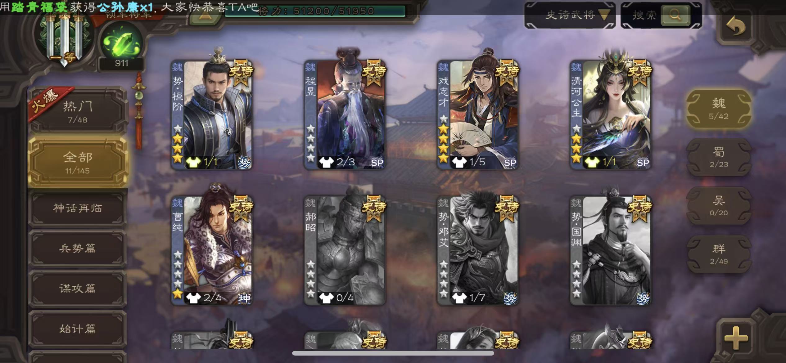 一等领军神姜维清河公主动态戏子势桓阶动态马云禄白马神赵云三卡