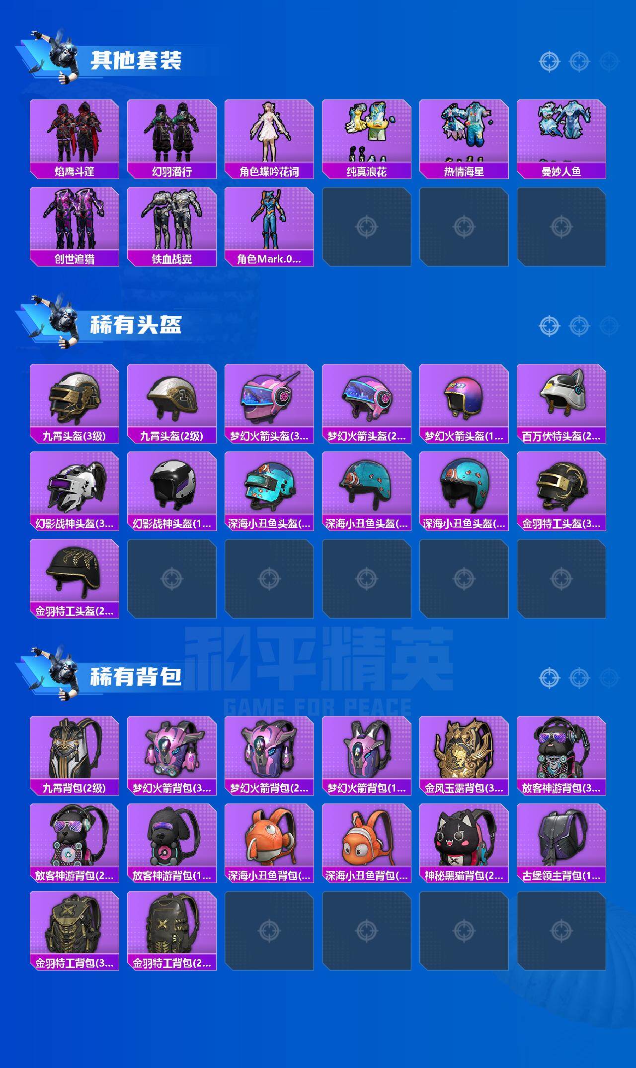 粉装11/粉枪18/珍稀飞行器,72237,/套装286/枪皮373/热力值/历史最高段位:王牌印记18次/Lv:70/七级AKM-炫紫旋律/五级AKM-绿萝繁花/五级SCAR-L-锦绣绵绵/七级M416-心之恋语/五级M416-电玩时刻/五级GROZA-镜光银凌/五级AUG-暖羊咩咩/五级M762-青锋波束/二级ACE32-萌骑漫游/五级UMP45-量子极