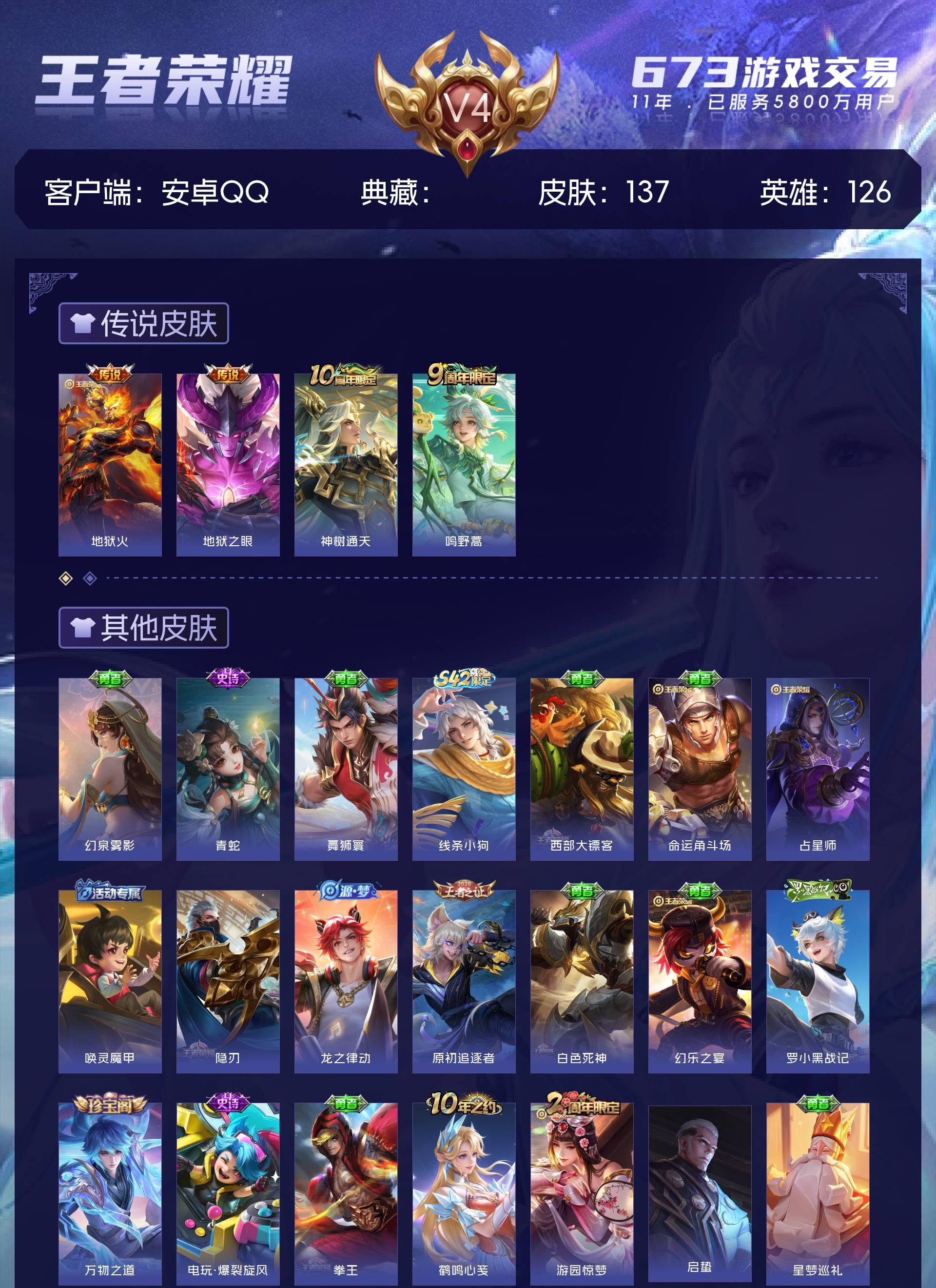 V4 皮肤137 英雄126 至尊星耀 星传说2 传说4