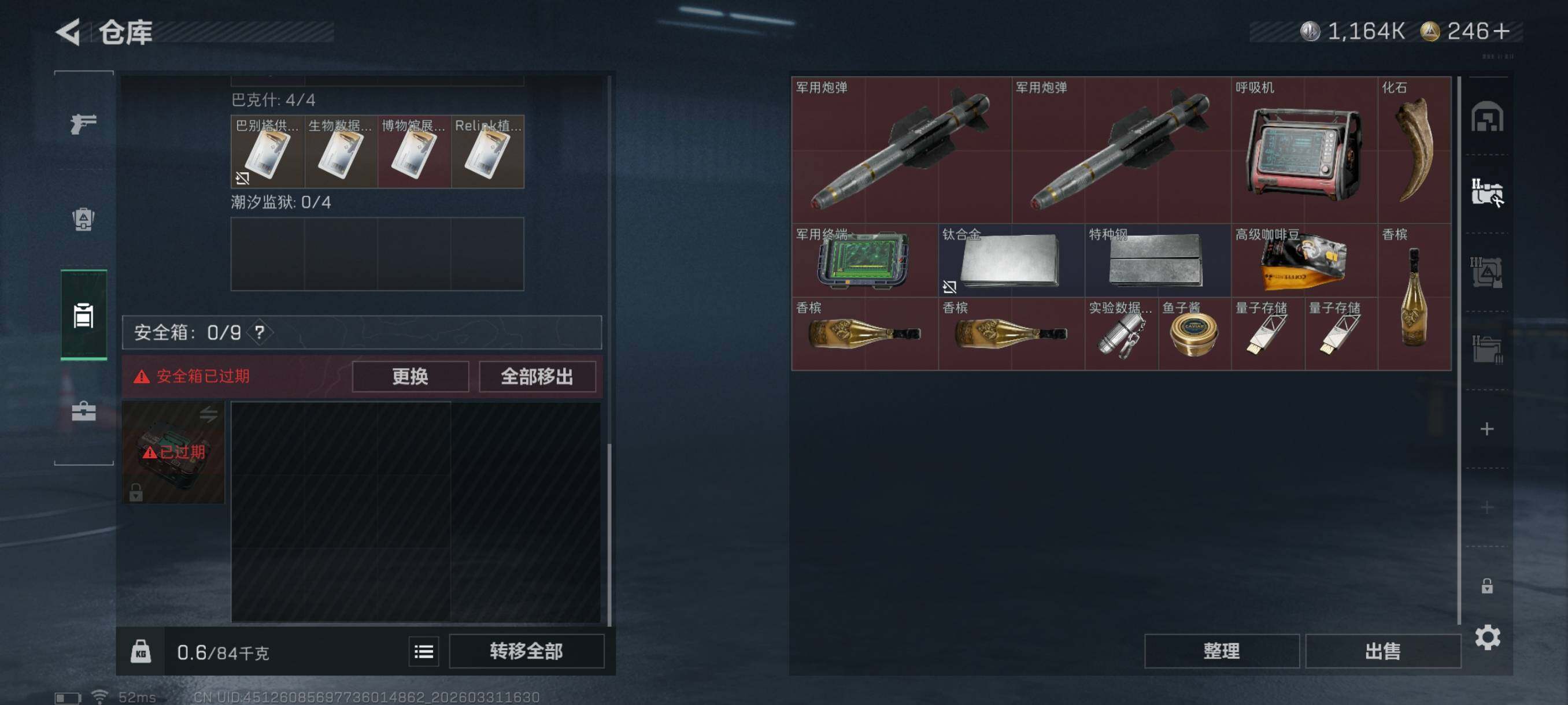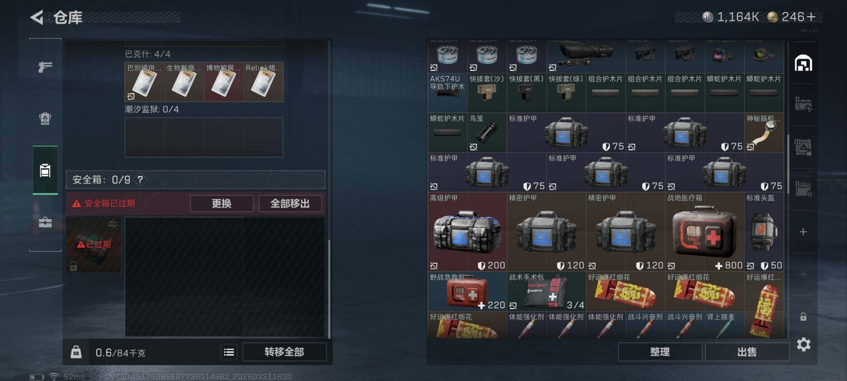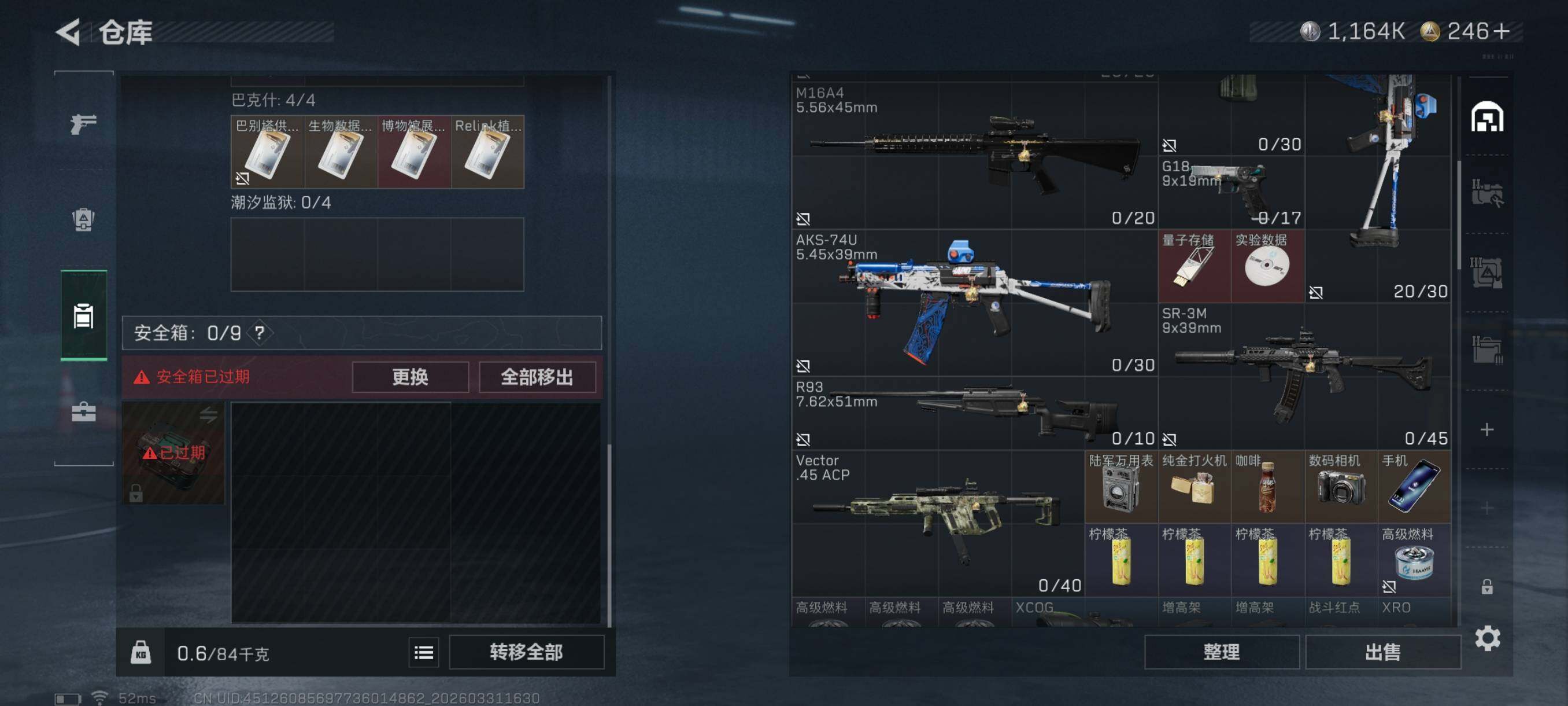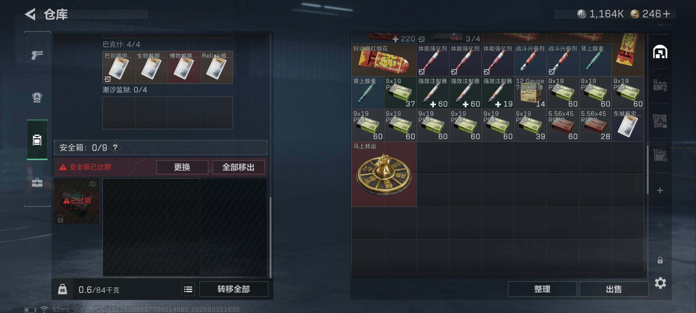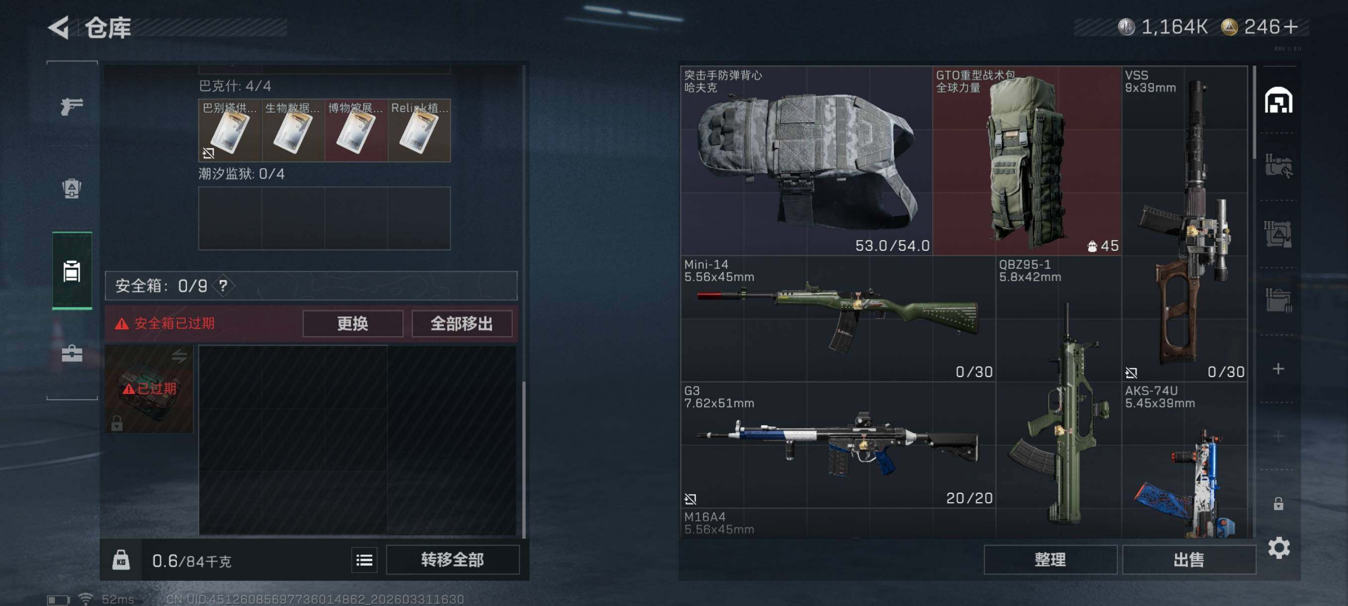 总资产(M):39M/哈夫币(K):1164K/
