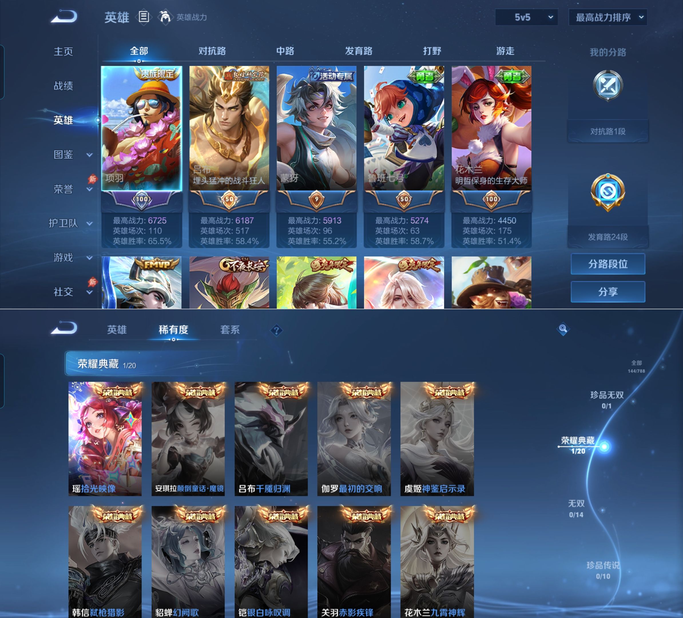 女号V7 典藏1 传说7发育路24段 -144皮肤-127英雄