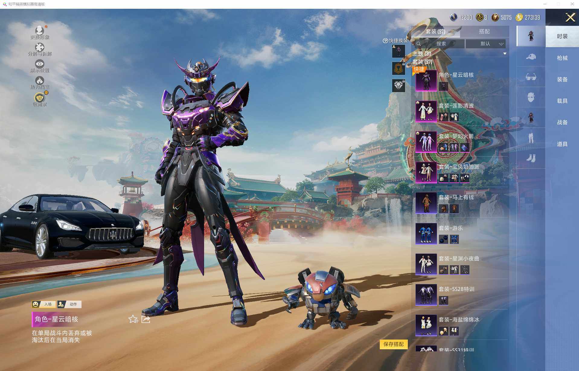 苹果【小号 粉装-梦幻火箭,套装-暗影哥特,M416-五爪金龙(七级),M416-电玩时刻(五级),玛莎拉蒂Quattroporte(夜幕蓝)】 手Q-4粉装-6特效枪-1载具-1粉色飞行器-41379热力值-8王牌印记-97套装-130枪皮