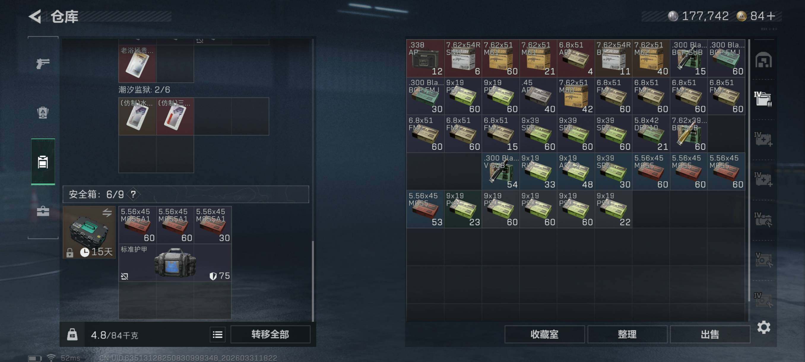 总资产(M):79M/哈夫币(K):177K/哈夫币(K):177K/传说枪皮