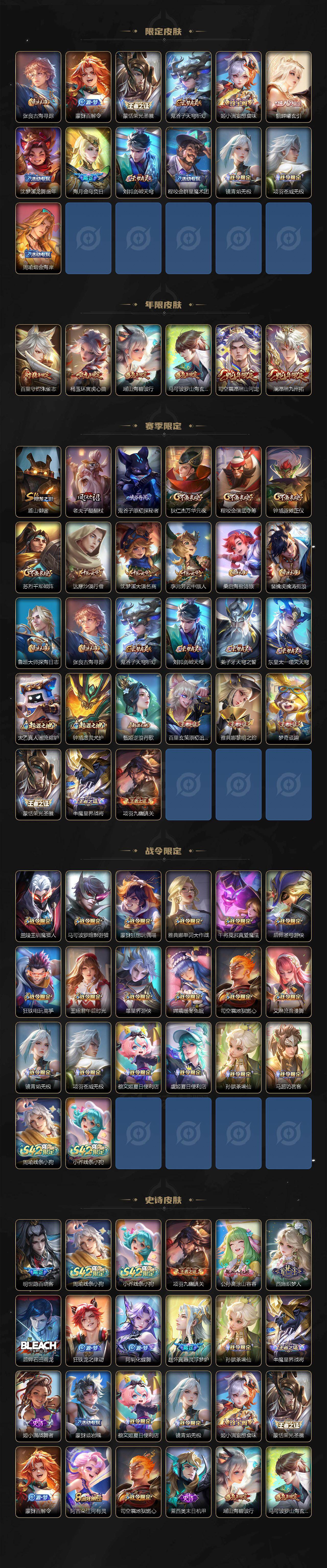 贵族8/皮肤319/典藏2/传说18/史诗98/英雄129/孙权