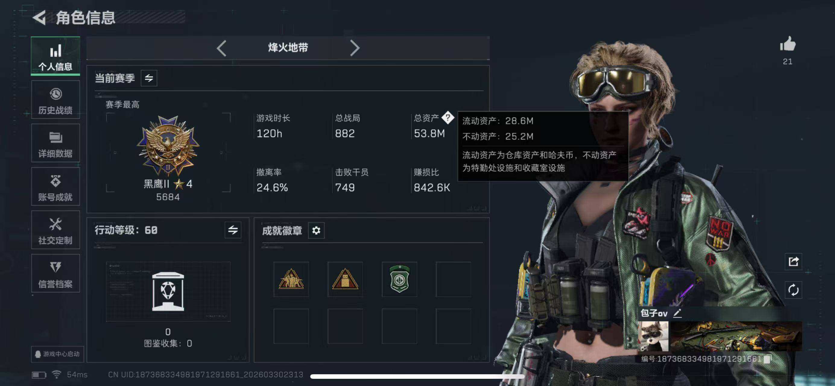 行动等级:60 总资产:53.8M 哈夫币:7.0W