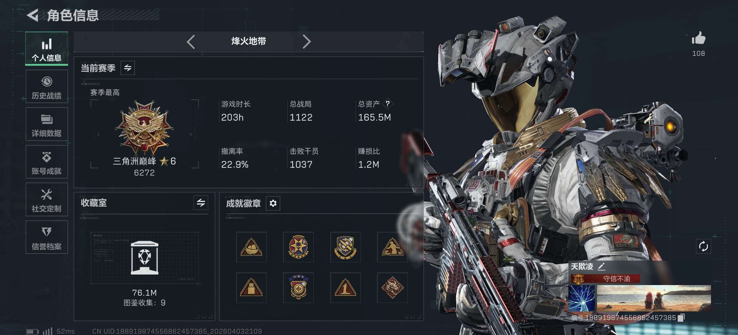 165m总资产-470k哈夫币-60烽火等级-黑鹰-42战场等级-上等兵