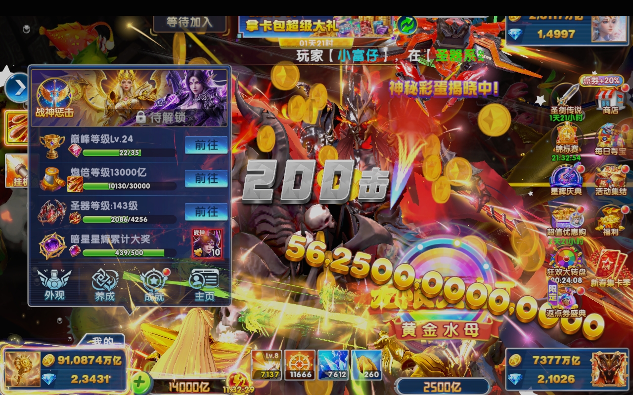 ✅ 小米渠道服,VIP3,91兆金币,1300亿高倍炮台