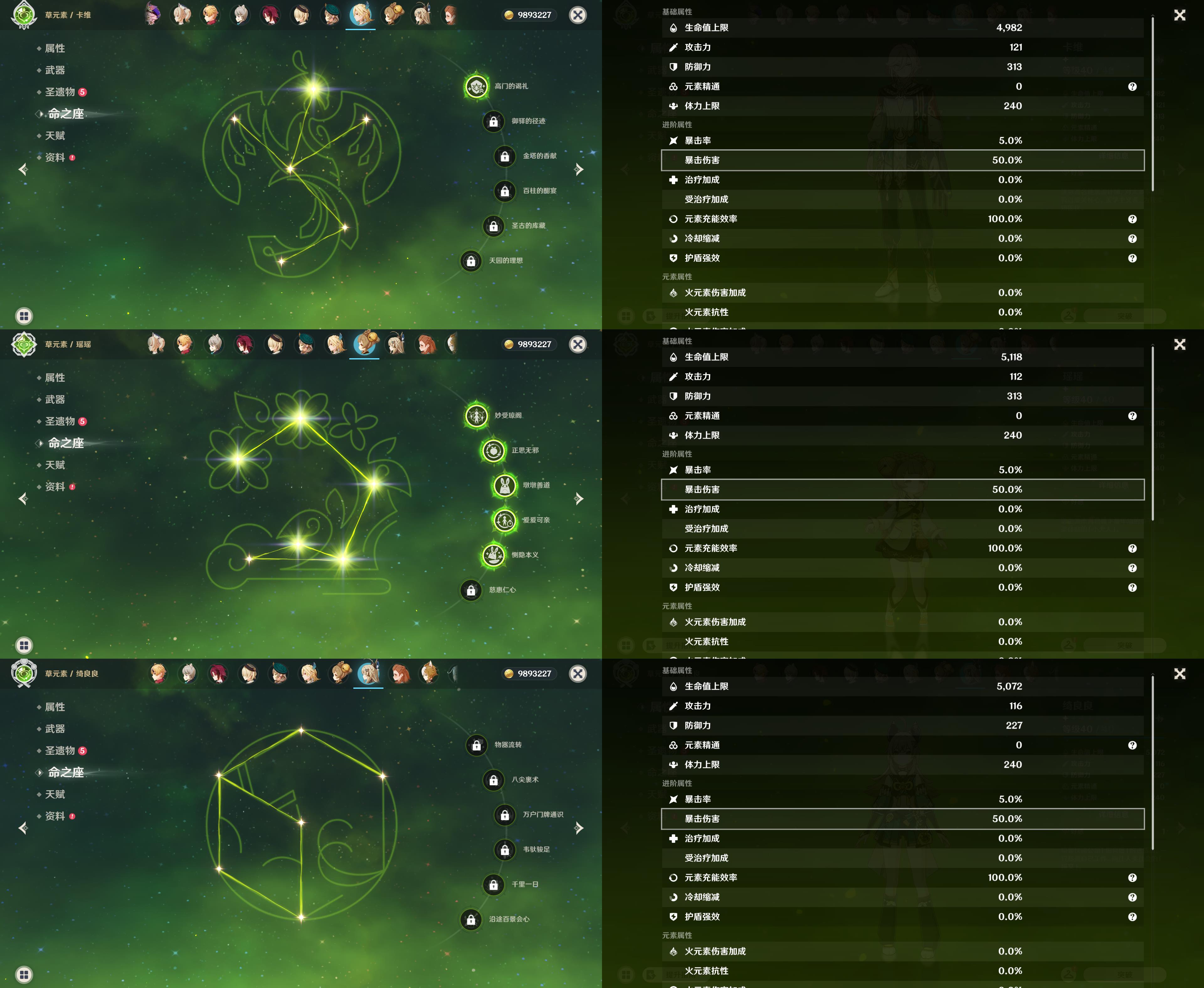 五星角色: