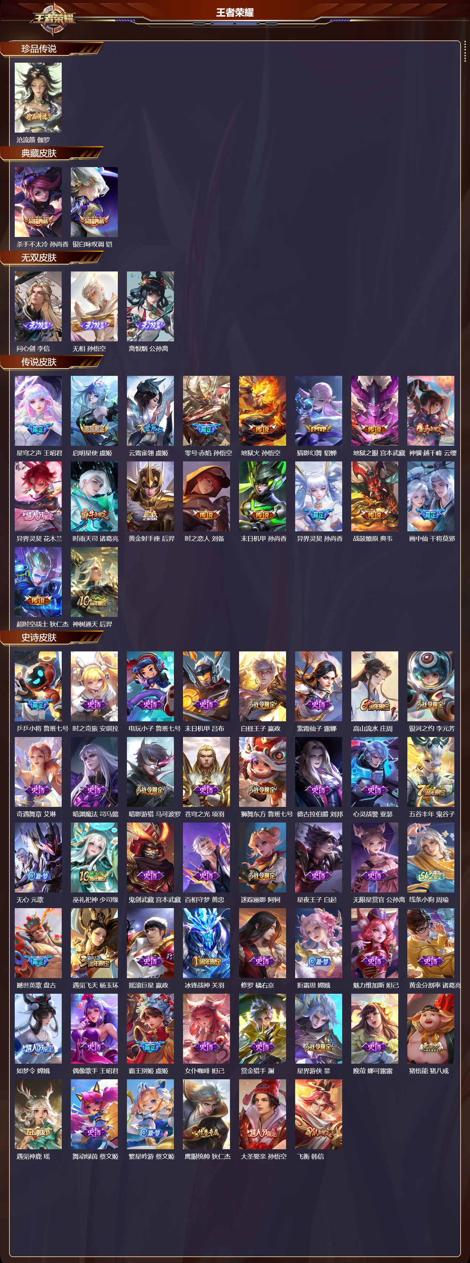 苹果QQ/最强王者/365皮肤/128英雄/2典藏/0珍品无双/3无双/1珍品传