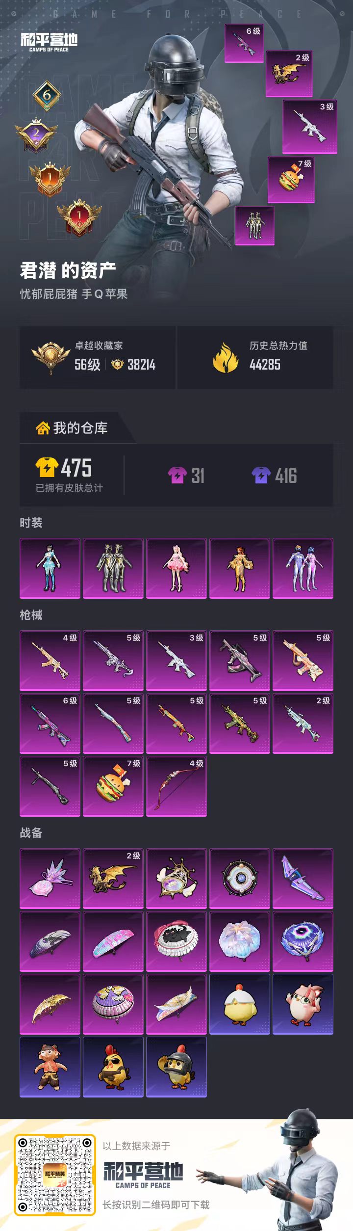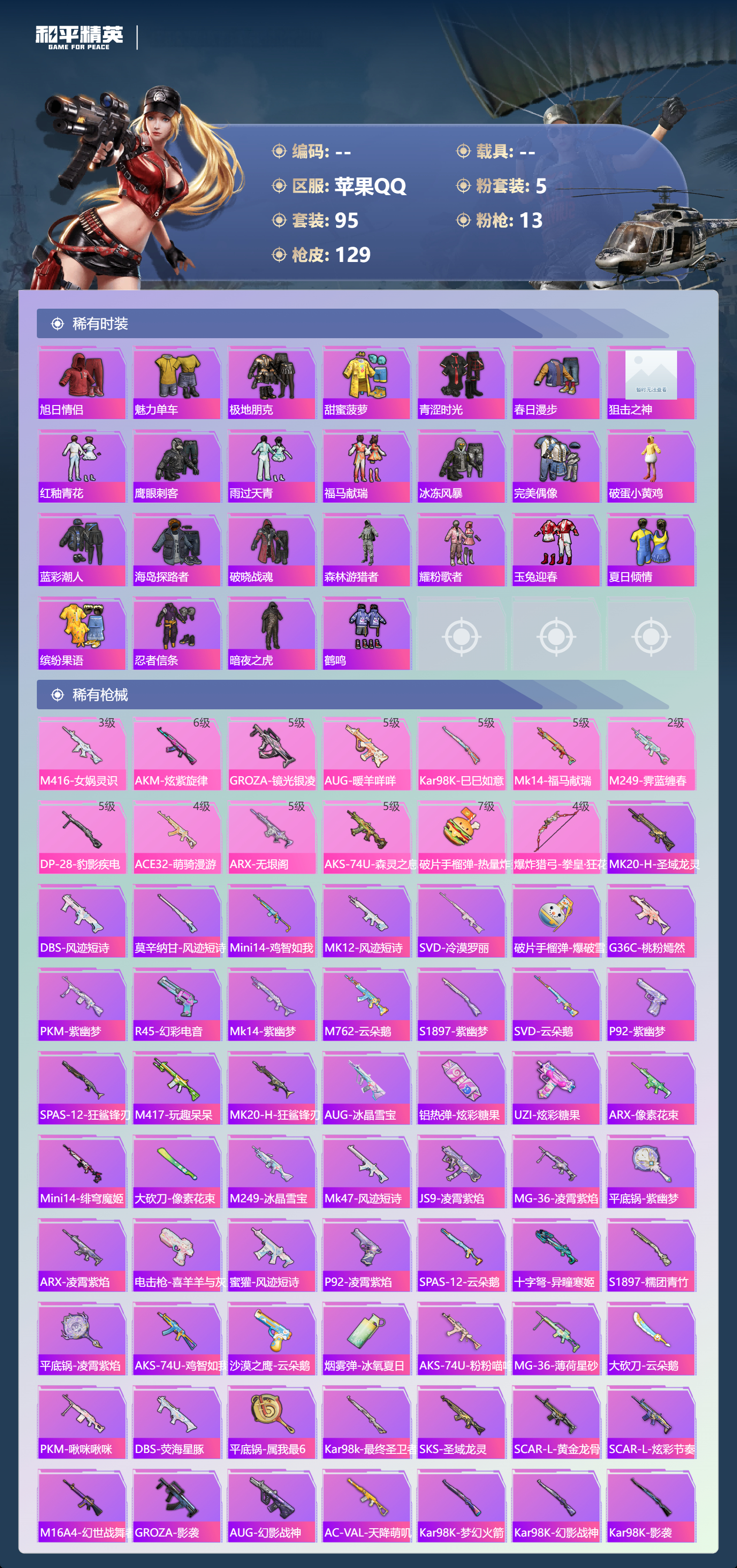 苹果手Q-6王牌印记-5粉装-13特效枪-44285热力值-95