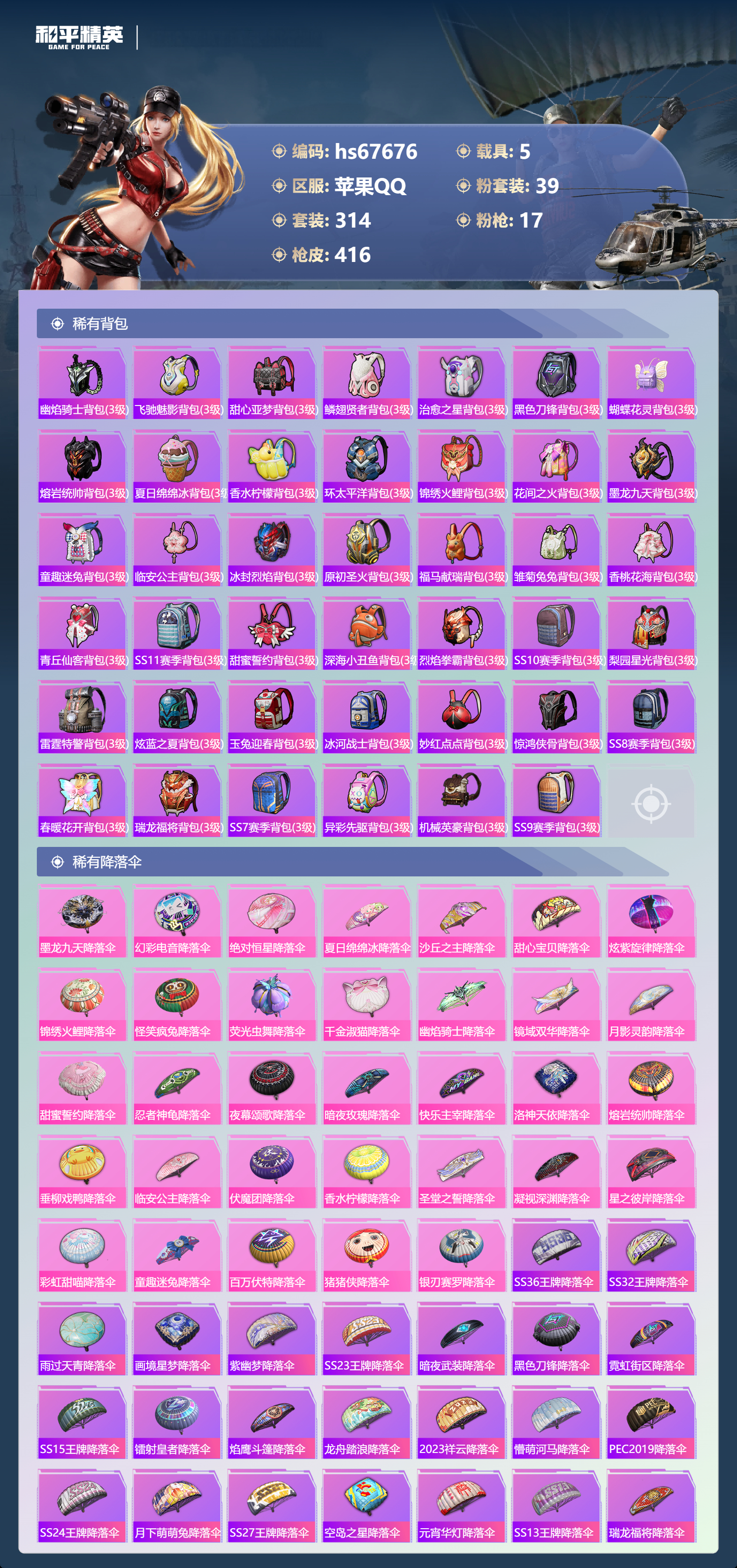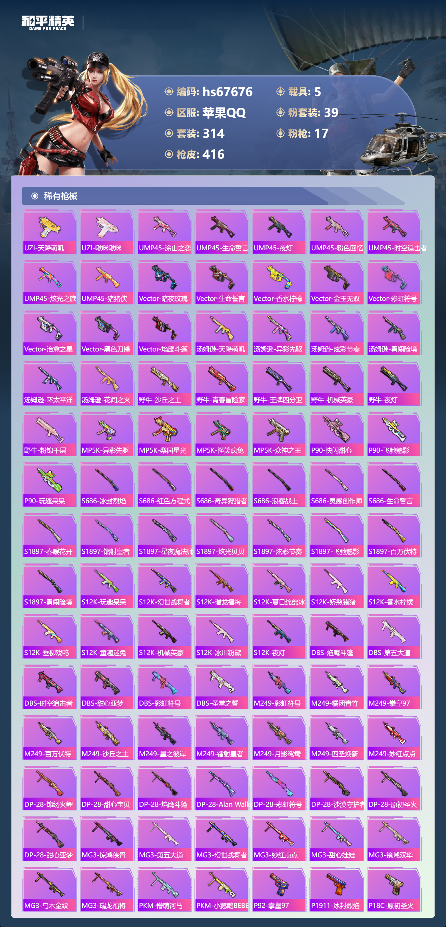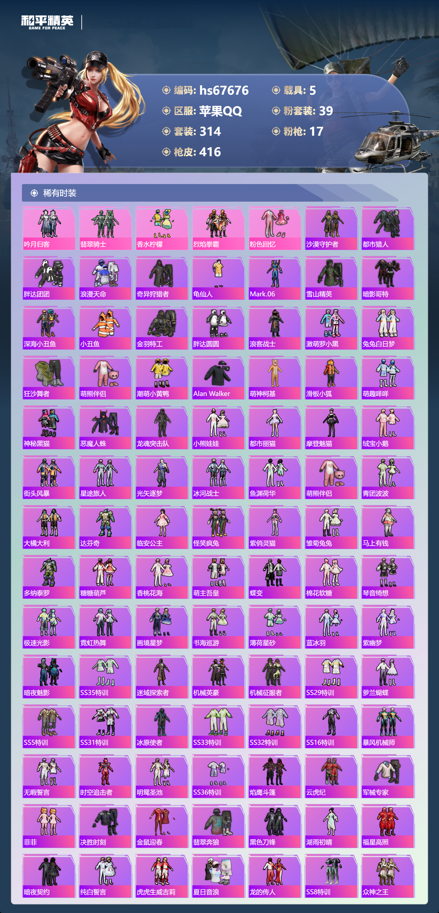 苹果手Q-22王牌印记-有战神框-1红装-39粉装-17特效枪-
