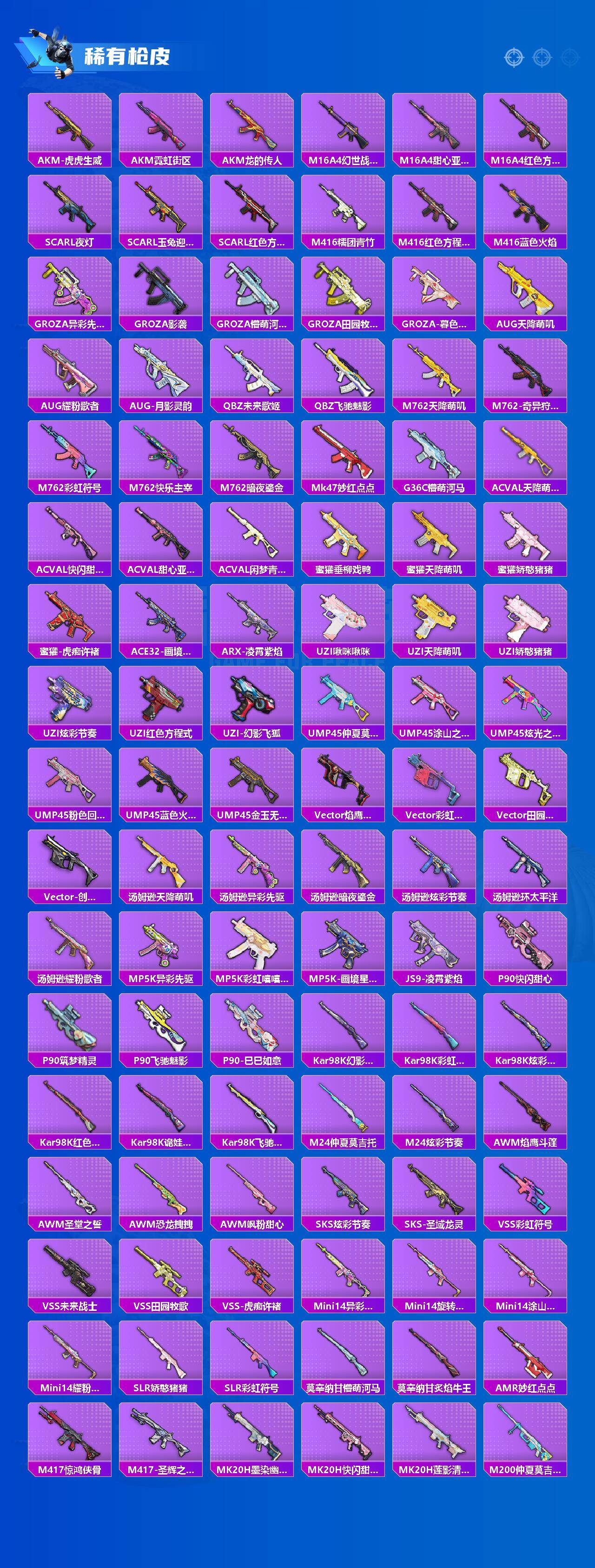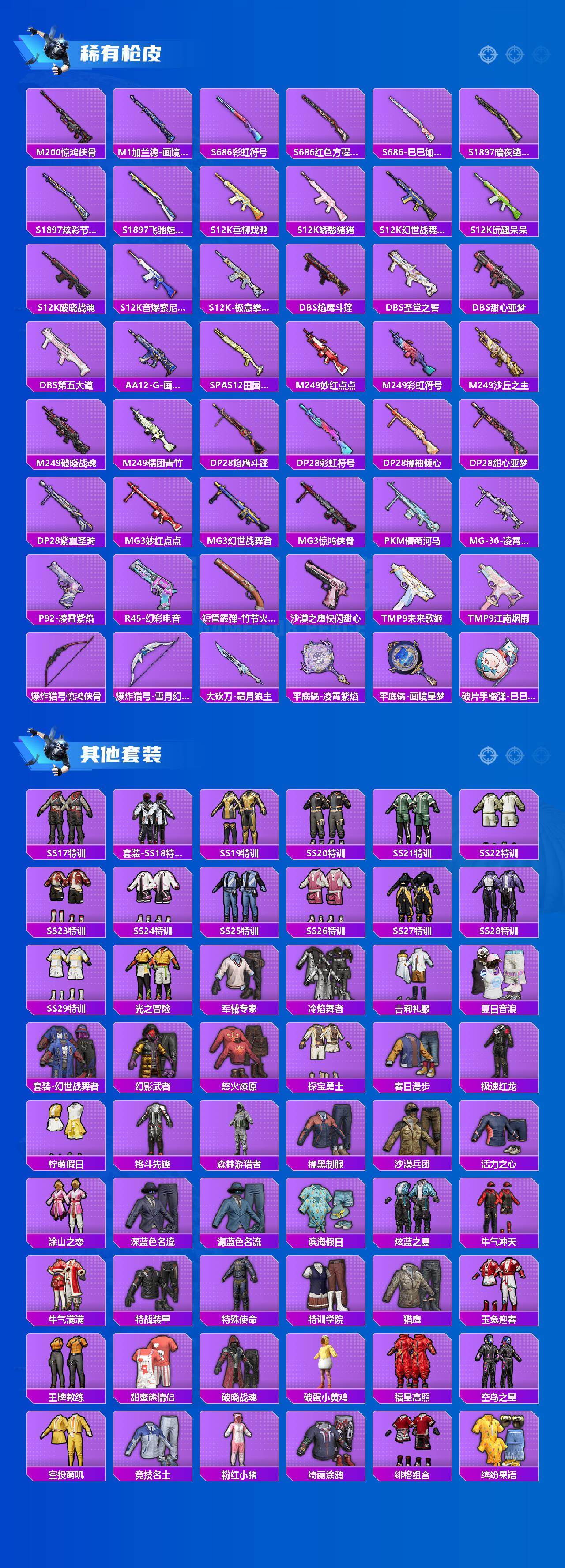 粉装8/粉枪9/珍稀飞行器,,/套装197/枪皮277/热力值89242/历史最高段位:王牌印记16次/Lv:60/五级AUG-星之彼岸/三级UMP45-萌骑冒险/五级AKS-74U-森灵之息/五级Kar98K-巳巳如意/五级Mk14-福马献瑞/七级DP-28-千金淑猫/五级DP-28-豹影疾电/七级PKM-天星战神/三级MG-36-虹云熊熊/粉装-音爆索尼
