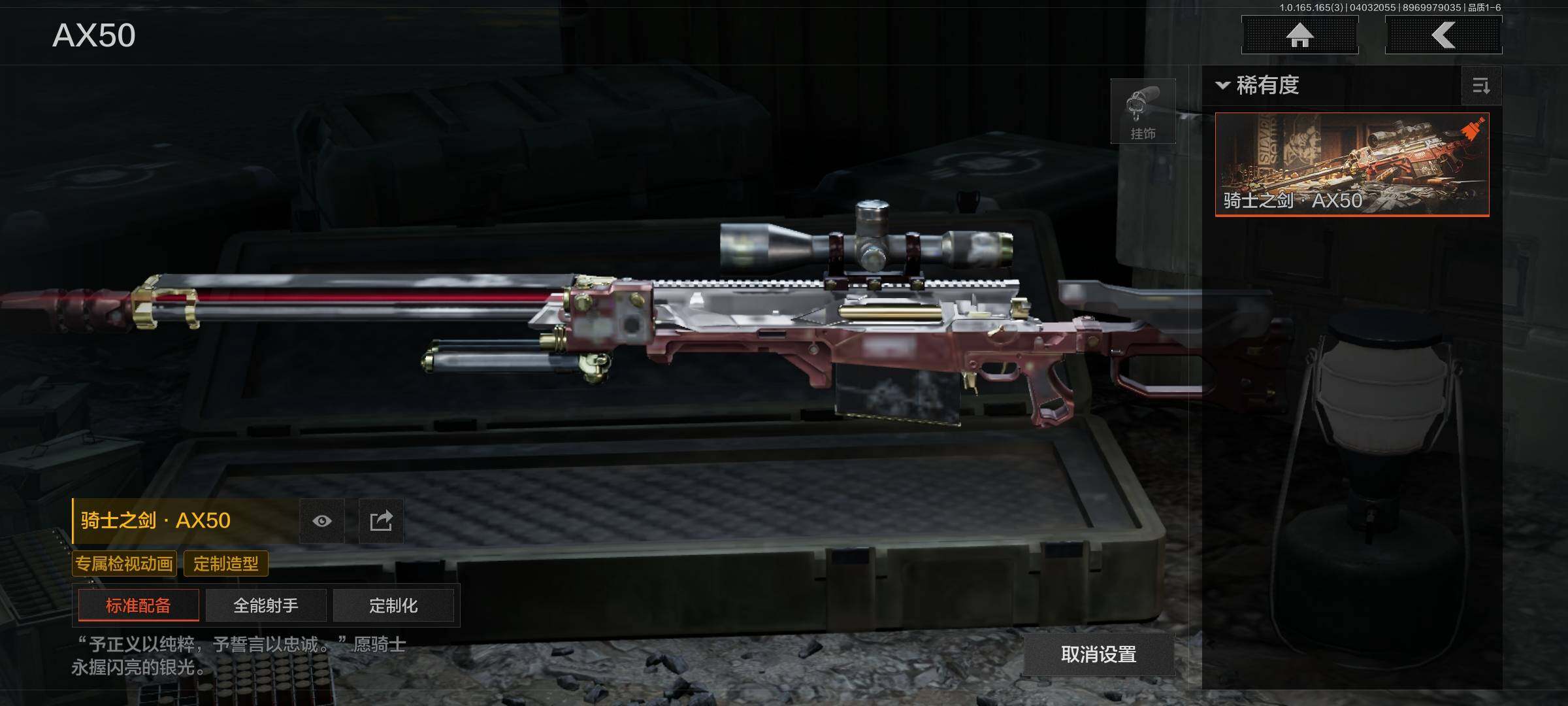 【AQQH1093】段位:专家/仓库价值(百万):70.6/机动防卫伸缩棍/工兵铲/骑士之剑AX50/旧王圣谕VSS/旧王圣谕QBZ191/战术大师AEK/告丧夜曲AUG/镀火熔金H416