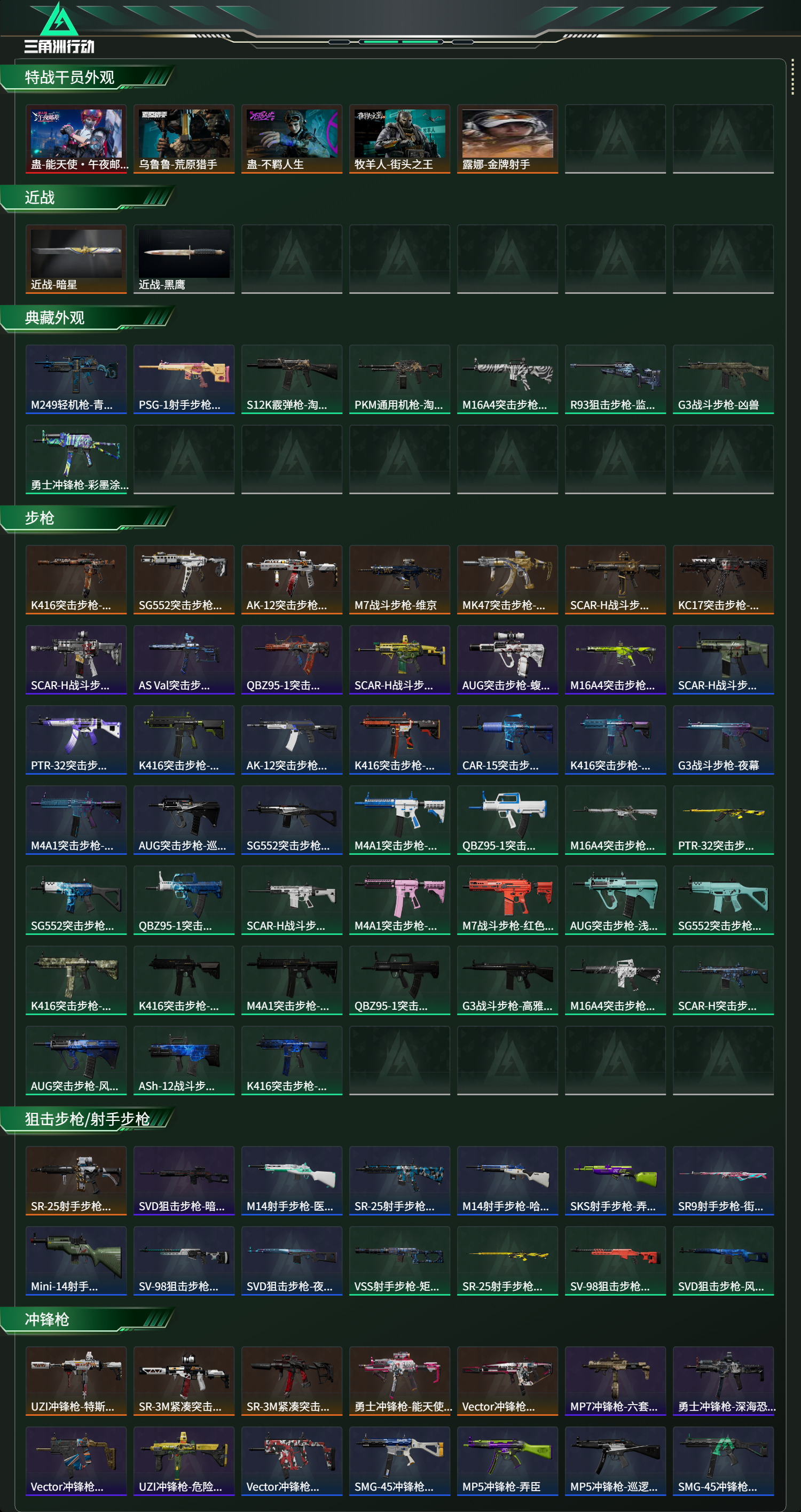 总资产55.12M,哈夫币 1296.88K,战场等级:1 列兵,行动等级:60 钻石,角色皮肤5,枪皮数量99【特战干员外观】乌鲁鲁-荒原猎手,蛊-能天使·午夜邮差,蛊-不羁人生,牧羊人-街头之王,露娜-金牌射手,【近战】近战-暗星,近战-黑鹰,【典藏外观】M249轻机枪-青纹,PSG-1射手步枪-休闲时光,PSG-1射手步枪-休闲时光,S12K霰弹枪-淘金者,S12K霰弹枪-淘金者,PKM通用