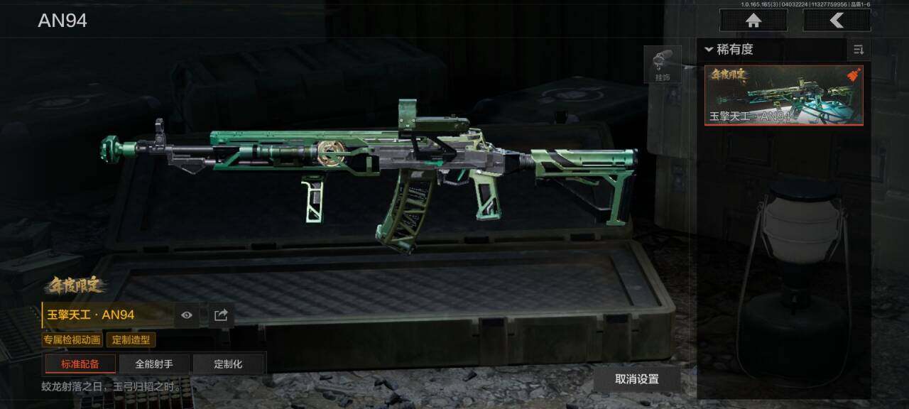 【AQQH1096】段位:大师/幽燕钛玄/工兵铲/玉擎天工AN94/玉擎天工MP5/太玄