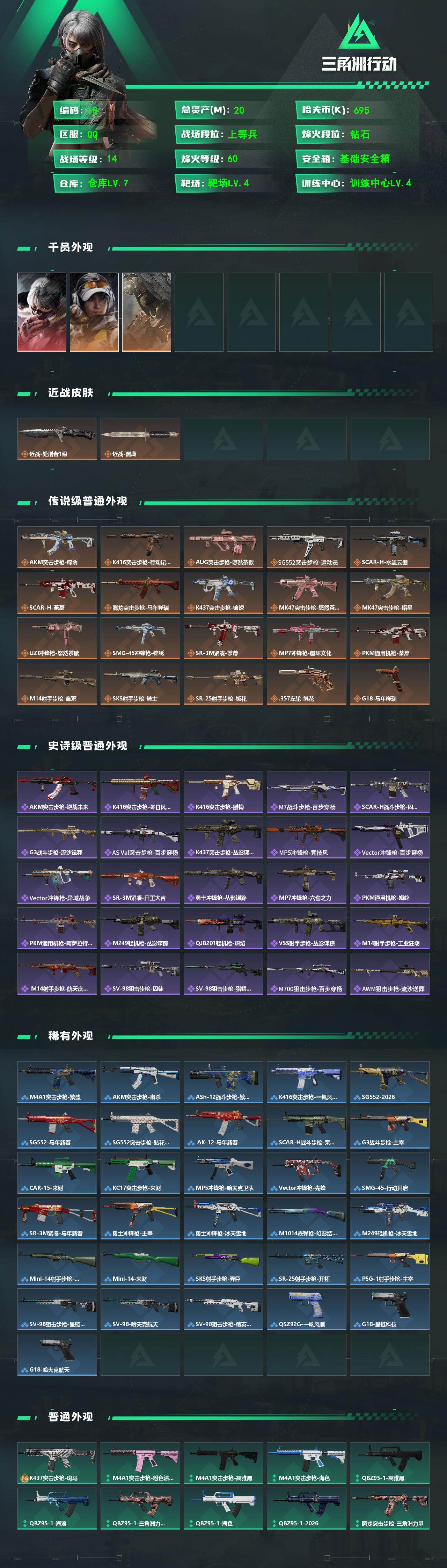 20m总资产-695k哈夫币-60烽火等级-钻石-14战场等级-上等兵