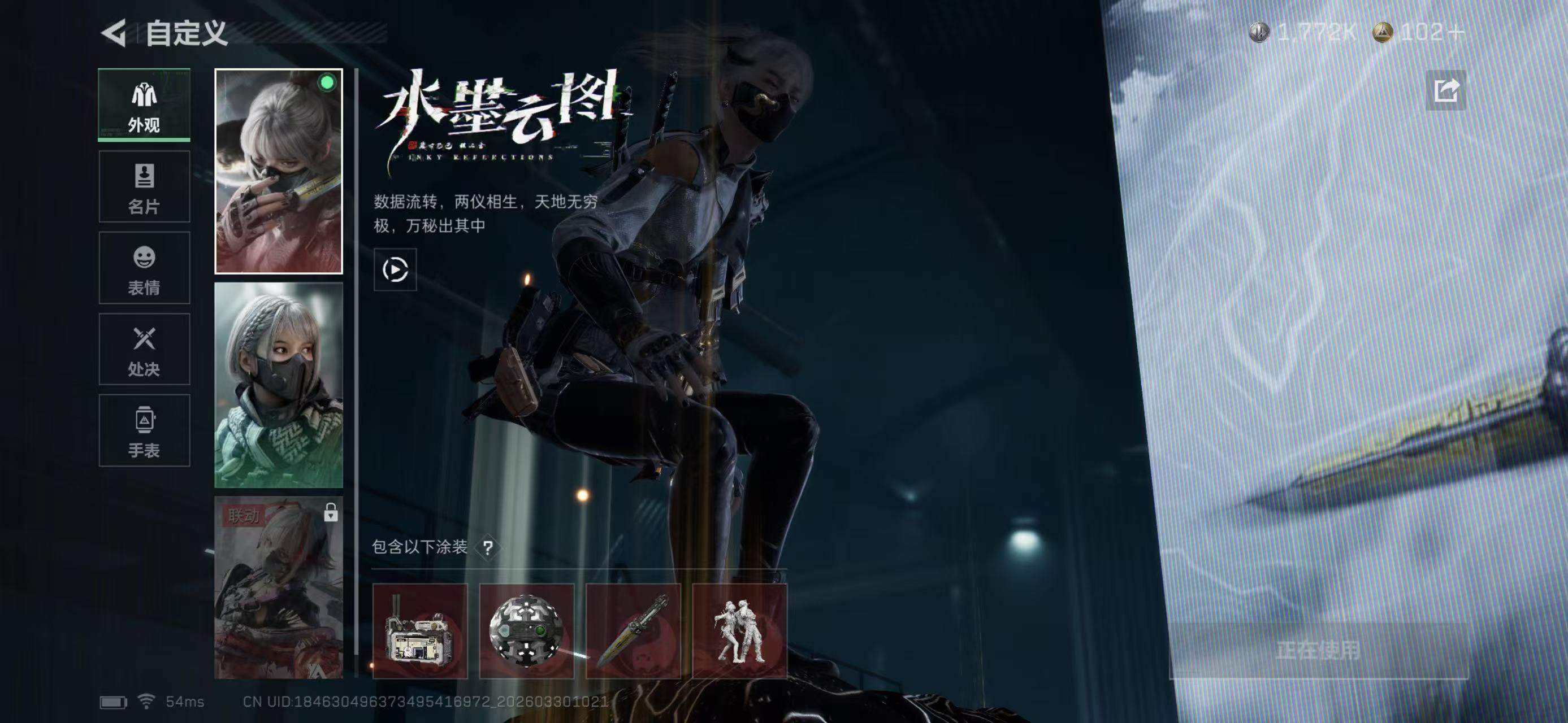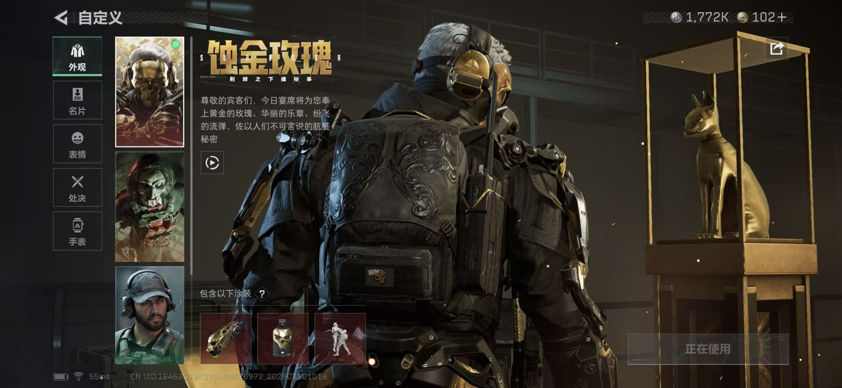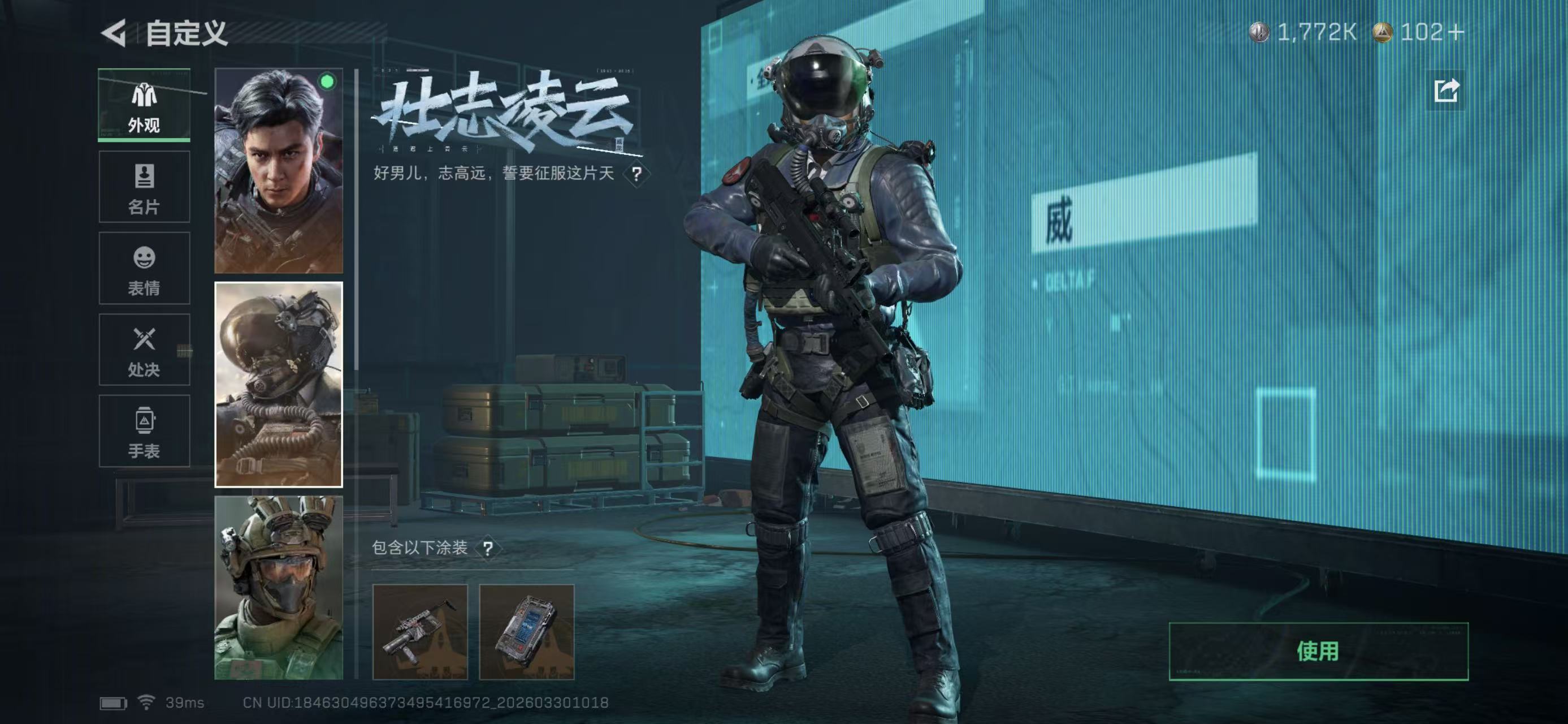 总资产520.69M,哈夫币 1772.53K,战场等级:38 列兵,行动等级:60 三角洲巅峰,角色皮肤11,枪皮数量230【特战干员外观】乌鲁鲁-荒原猎手,红狼-蚀金玫瑰,骇爪-水墨云图,露娜-黑·天际线,威龙-壮志凌云,威龙-飞虎,蜂医-送葬人·无题密令,无名-夜鹰,红狼-电锯惊魂,露娜-金牌射手,深蓝-不破誓约,【近战】近战-影锋,近战-黑海,近战-北极星,近战-怜悯,近战-赤枭,近战-信
