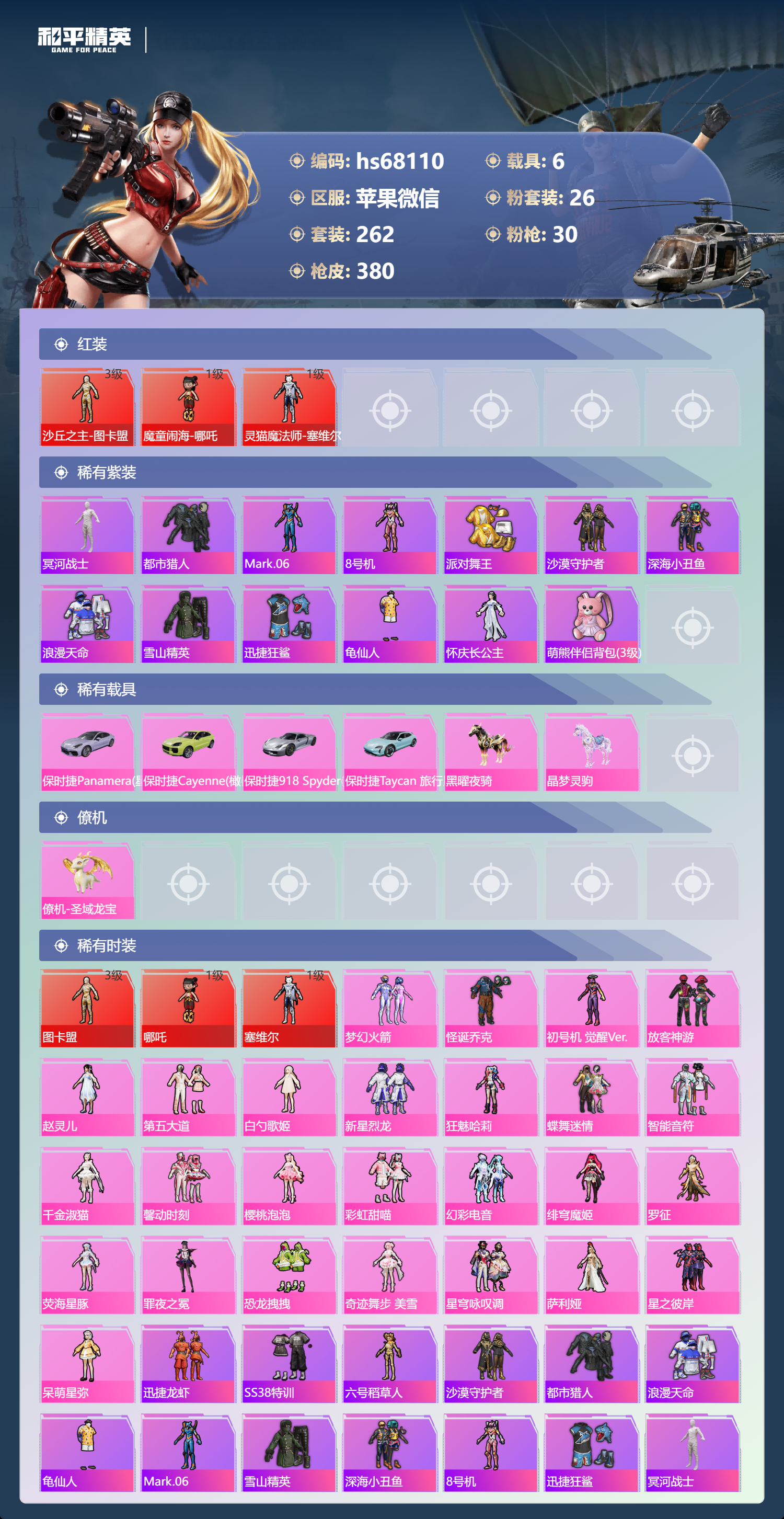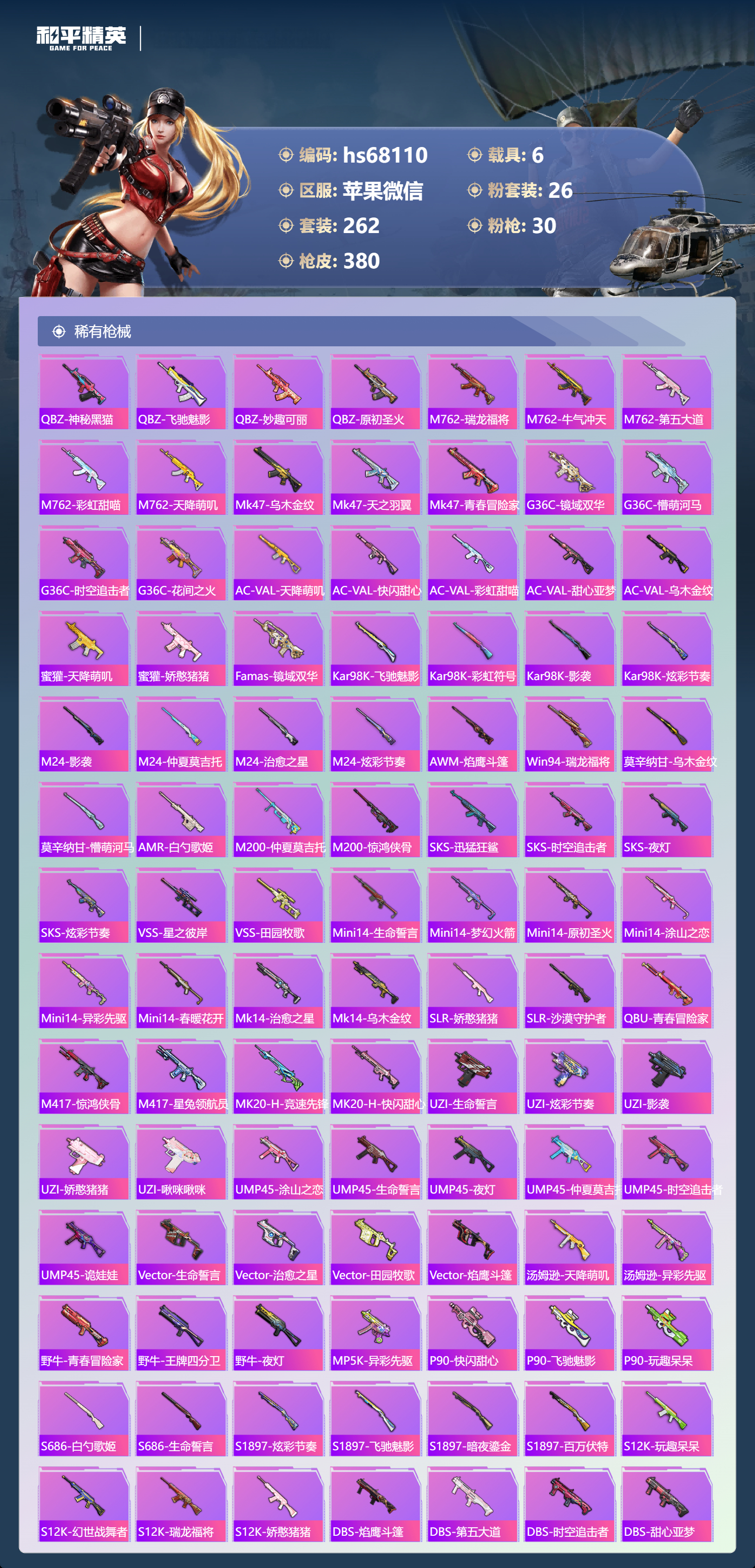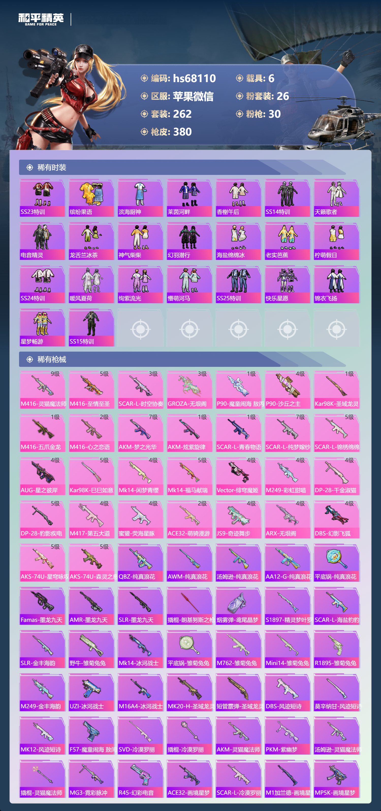 28王牌印记-有战神框-3红装-26粉装-30特效枪