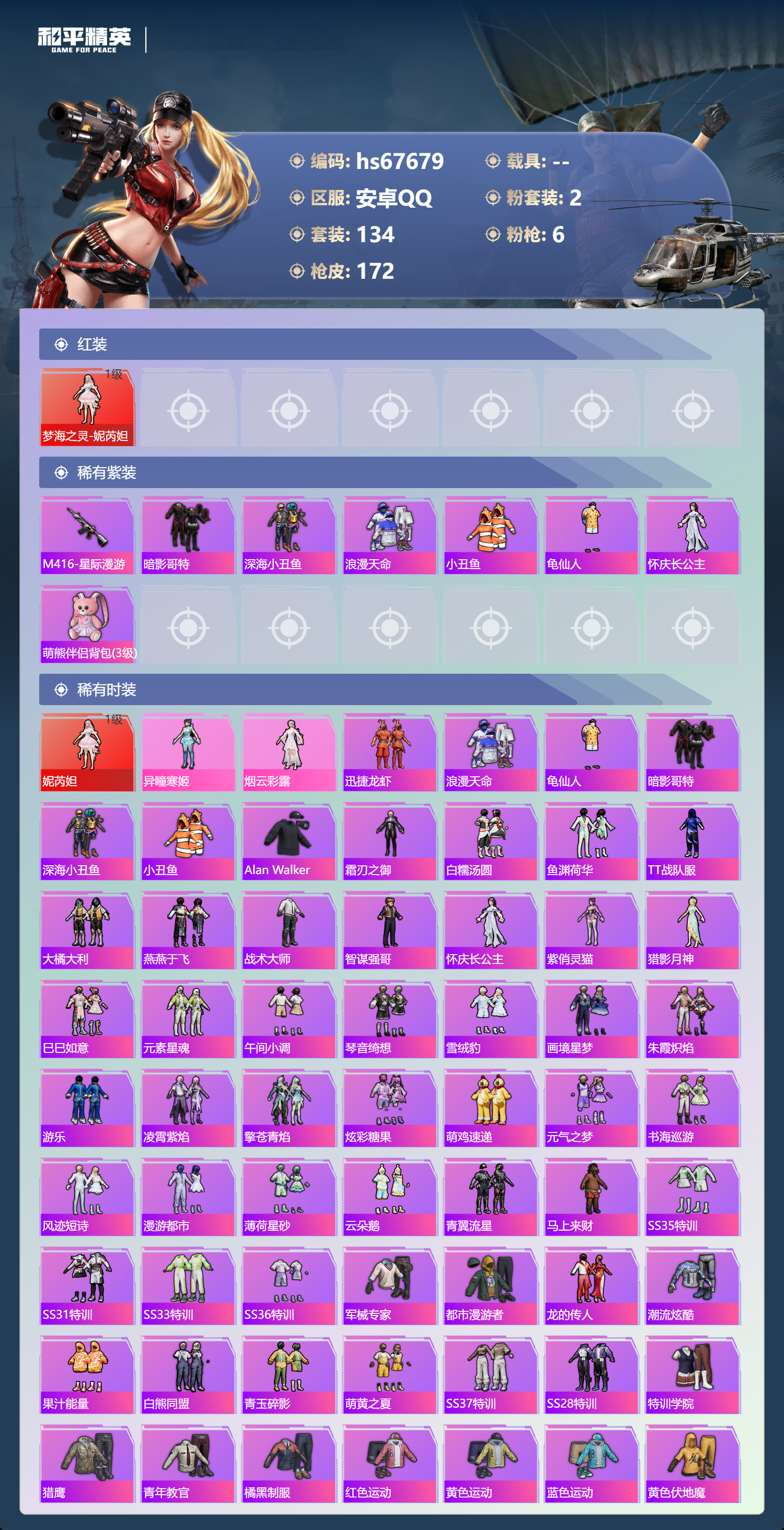 安卓手Q-3王牌印记-1红装-2粉装-6特效枪-47038热力值