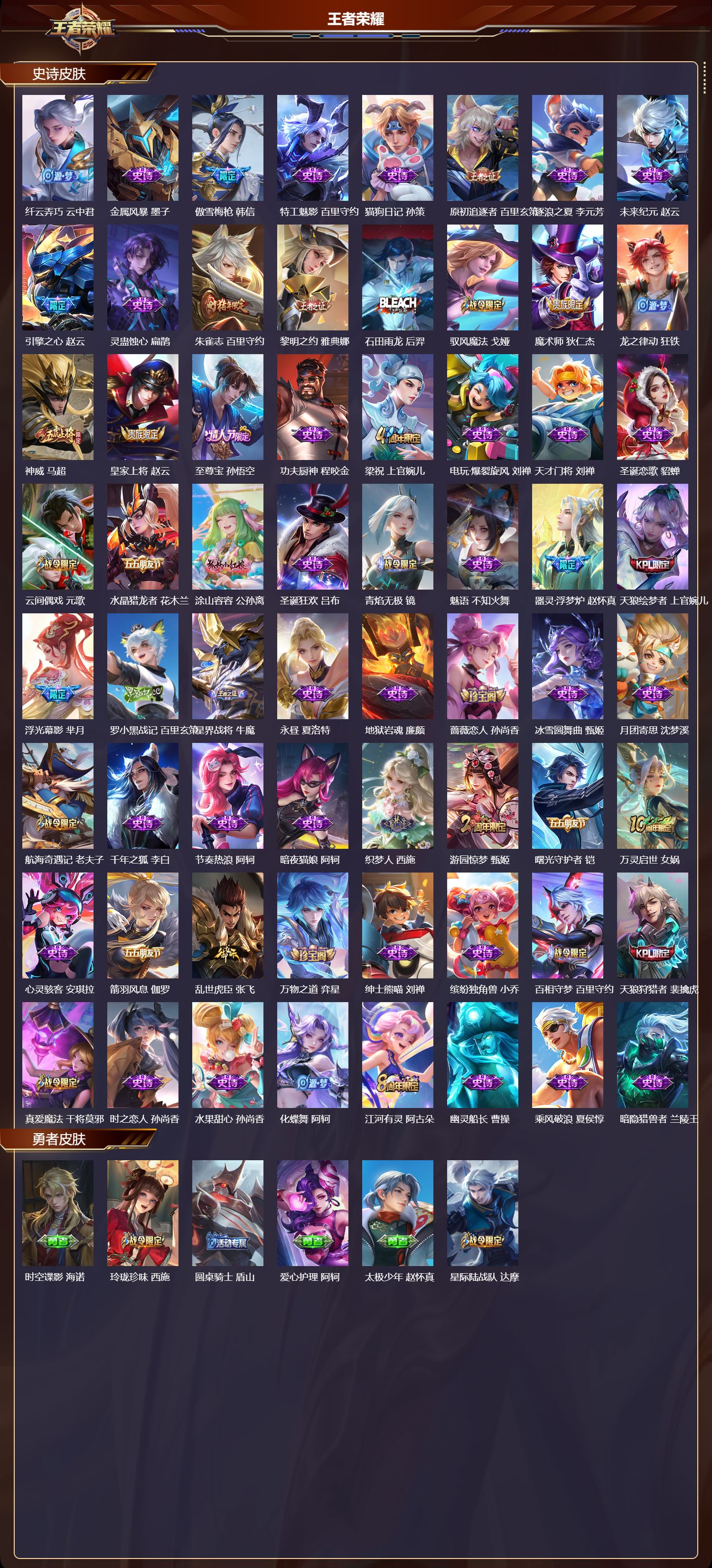 苹果QQ/非凡王者/404皮肤/128英雄/1典藏/0珍品无双/0无双/0珍品传