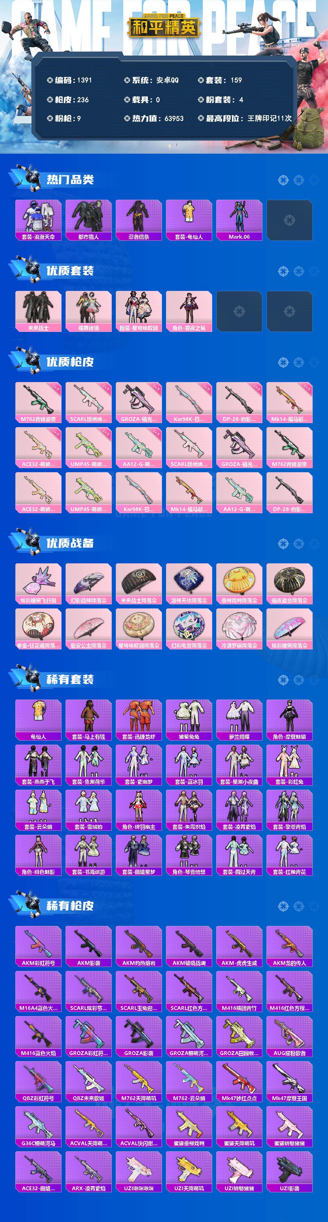 【4粉9特 都市猎人 角色-Mark.06】安卓 手Q-4粉装-9特效枪-0载具-1粉色飞行器-63953热力值-11王牌印记-159套装-236枪皮