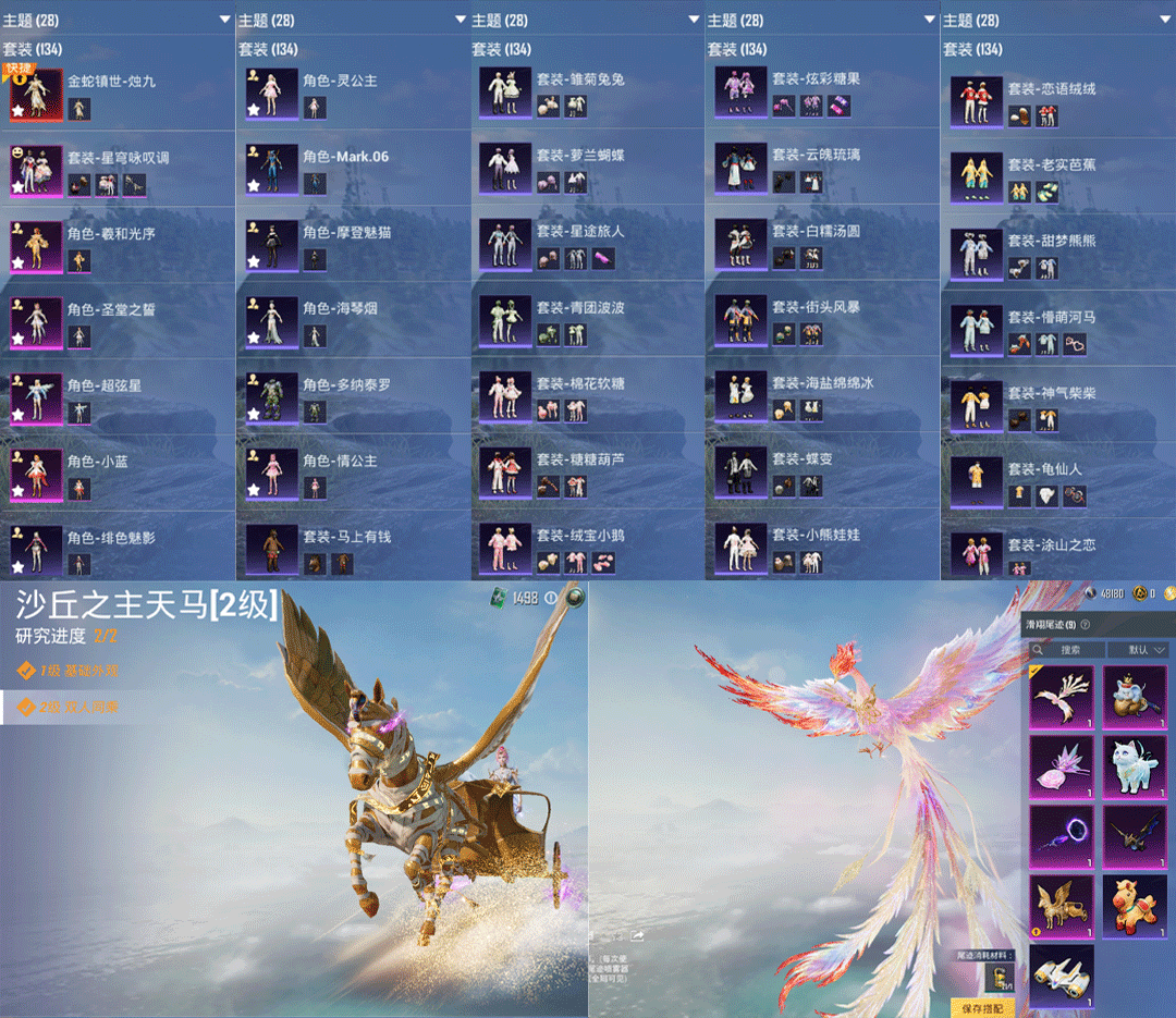 特效枪7:AKM-幽焰骑士3级,UMP45-萌奇冒险1级,MK14-福马献瑞4级,DP-28-豹影疾电5级,kar98k-巳巳如意5级,M762-清风波束5级,UMP45-量子极限5级,