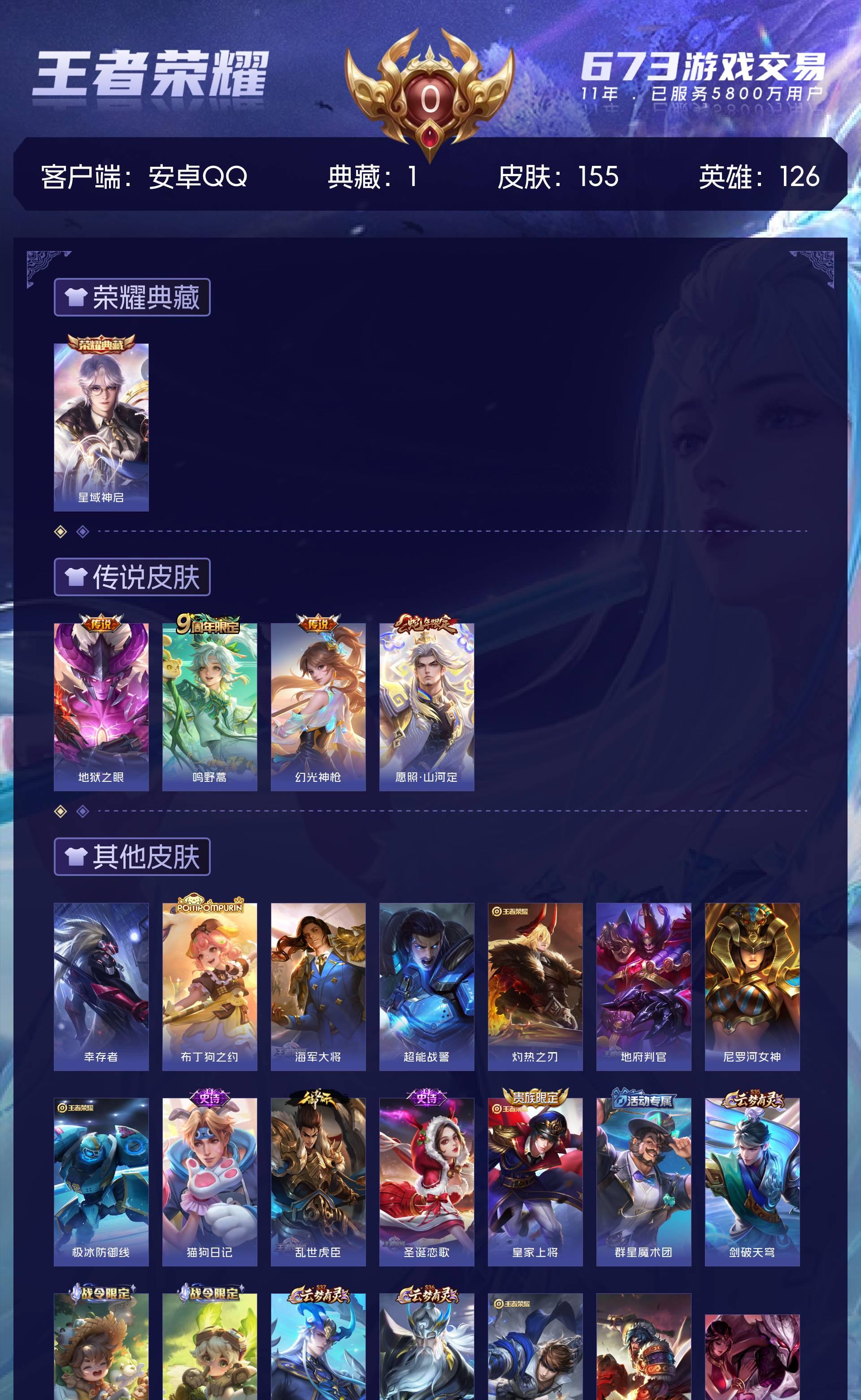 安卓Q 可二次 皮肤155 英雄126 永恒钻石 荣耀典藏1 传说4-4按键 5王者印记 五级铭文 精品小号·诸葛亮典藏·蛇年司空震