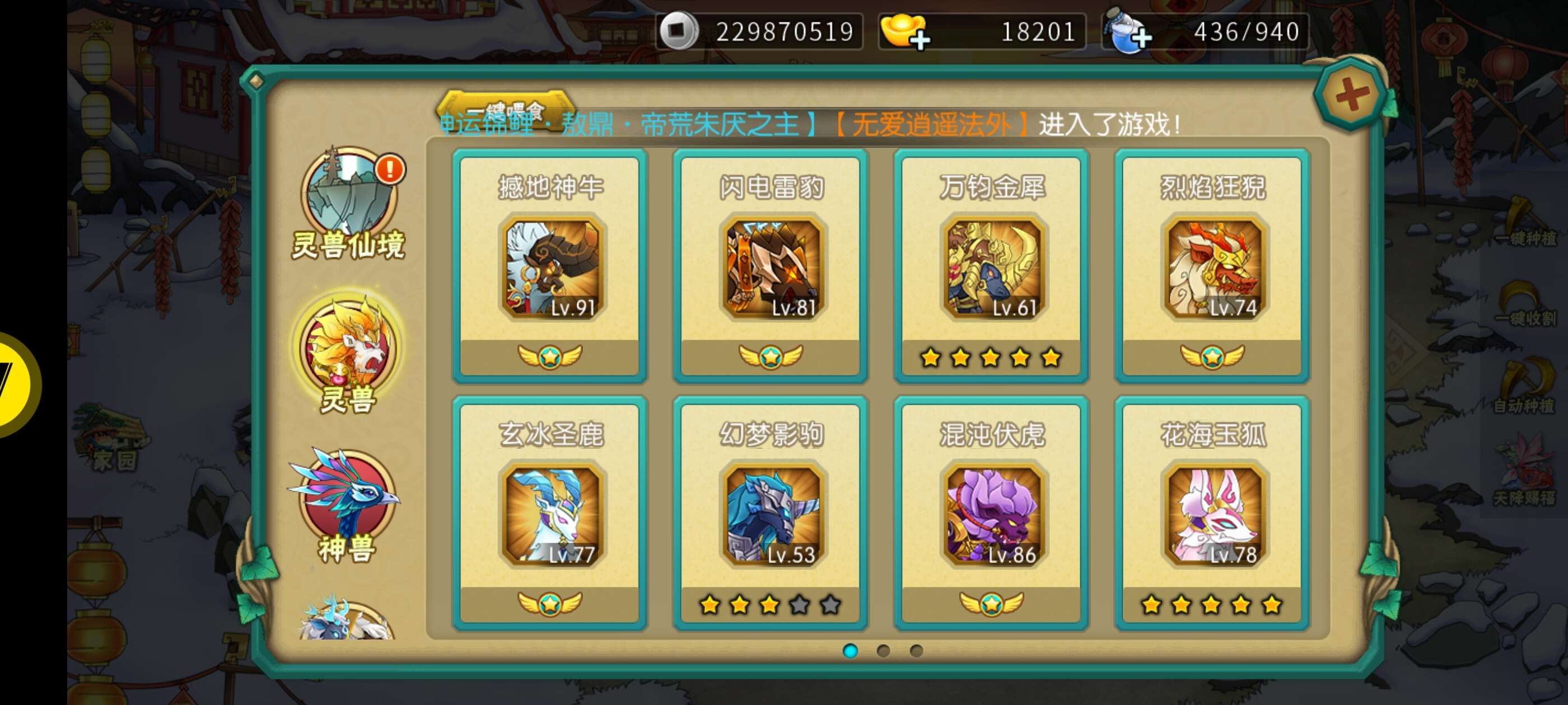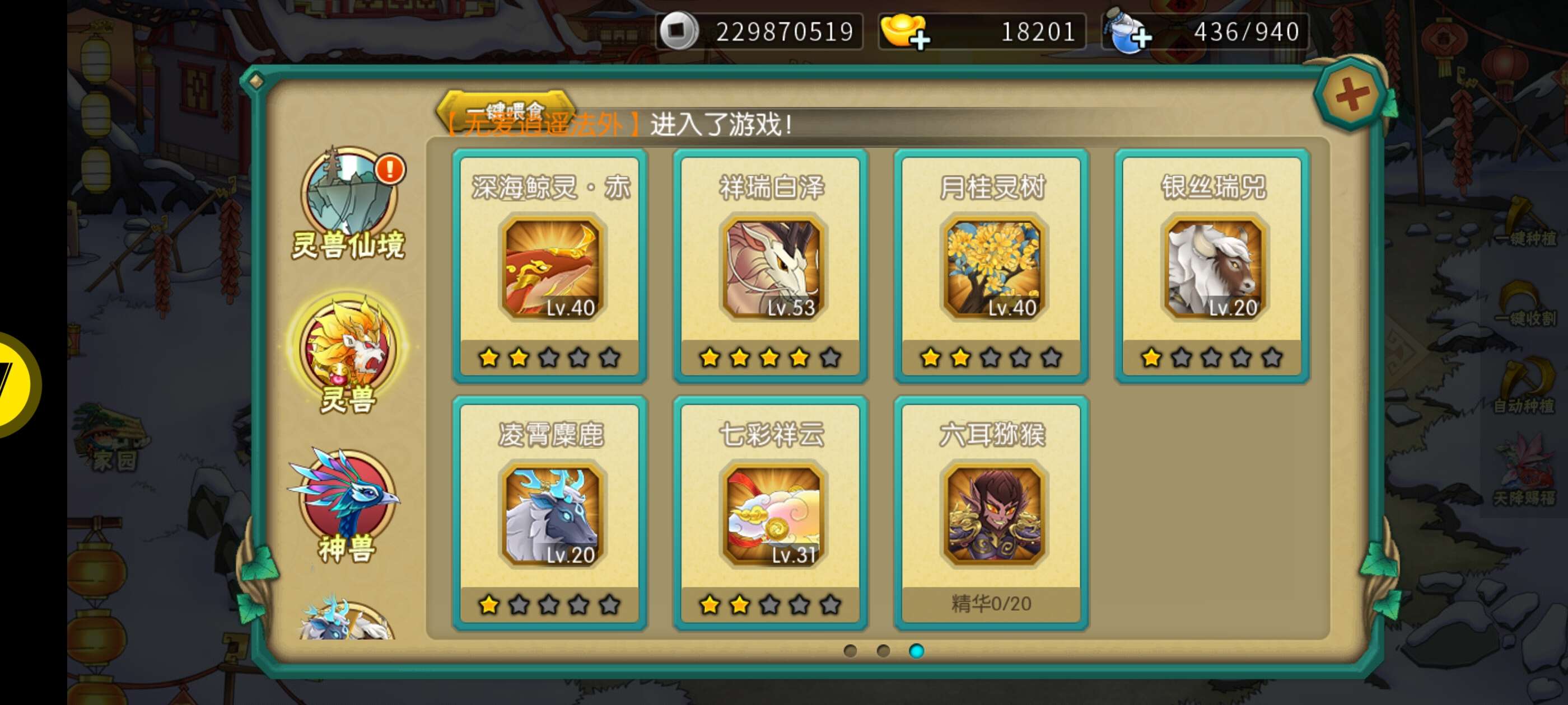 神兽都有 其他的图片里有号上还有接近2w元宝