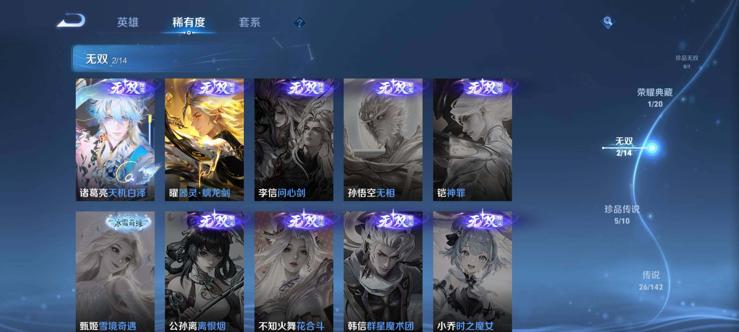 【AZW328】安卓Q-V8-永恒钻石I段位-129英雄-337皮肤-1典藏皮肤-2无双-5珍品传说-26传说-88史诗