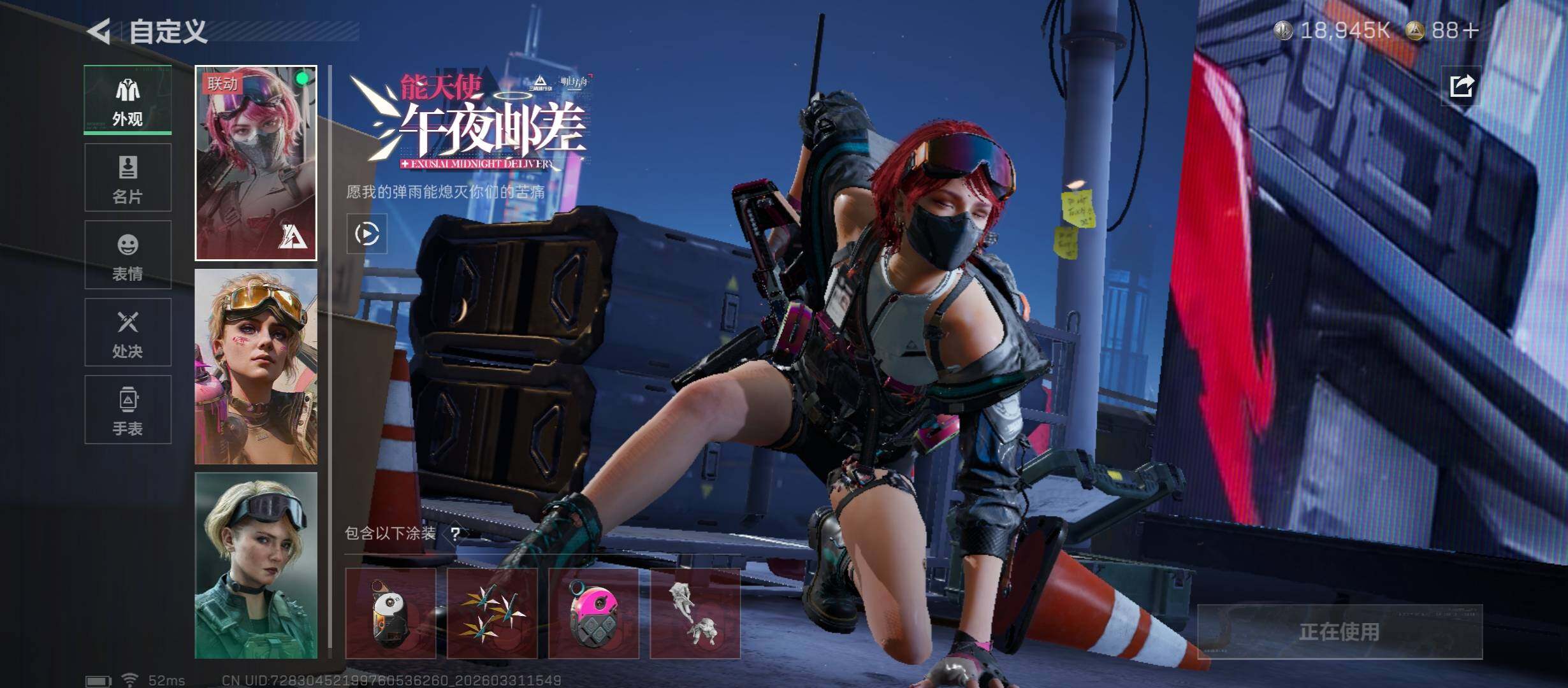 【干员外观】:红狼-蚀金玫瑰,蛊-能天使午夜邮差,骇爪-维什戴尔,无名-夜鹰,深蓝-不破誓约,红狼-电锯惊魂,露娜-金牌射手,乌鲁鲁-荒原猎手,蛊-不羁人生
