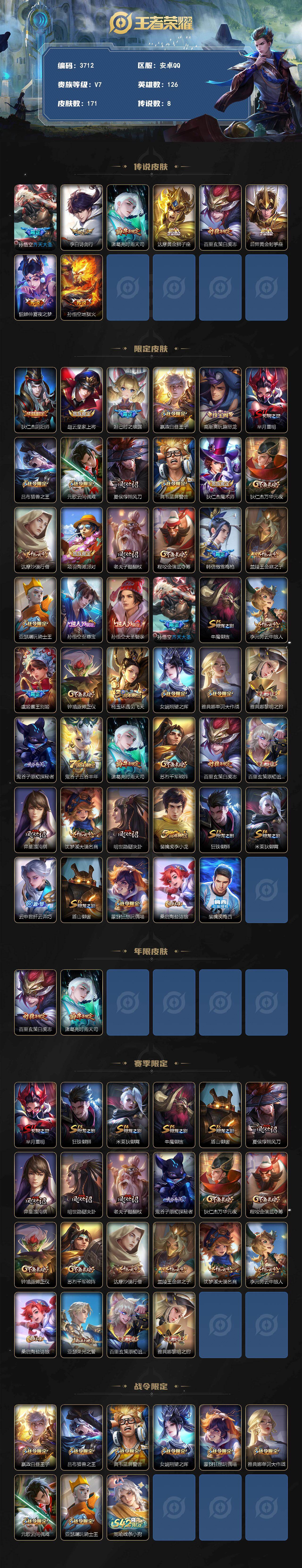 【3712】wj【秒换绑,精品小号】安卓Q-V7-永恒钻石IV段位-126英雄-171皮肤-8传说-37史诗