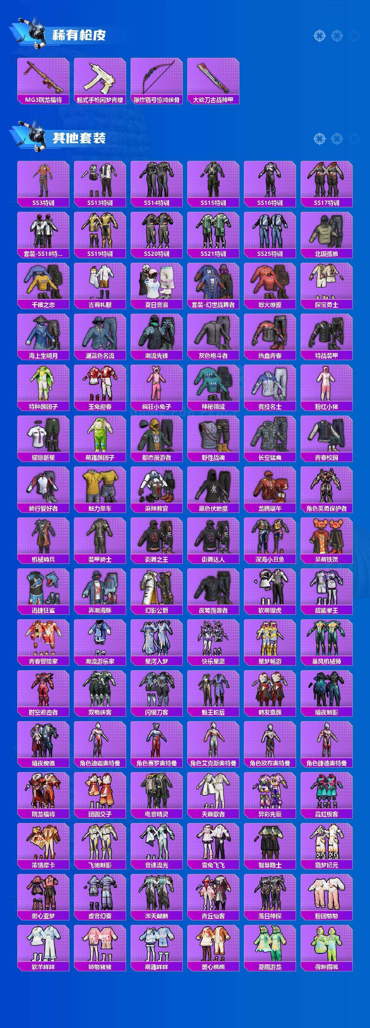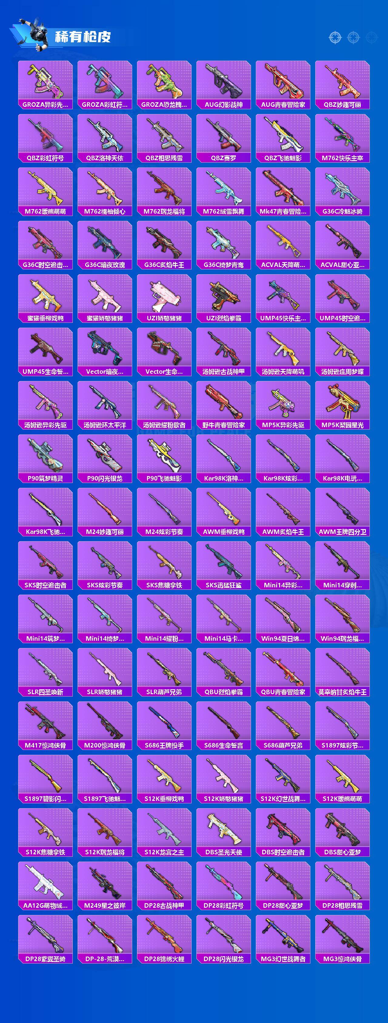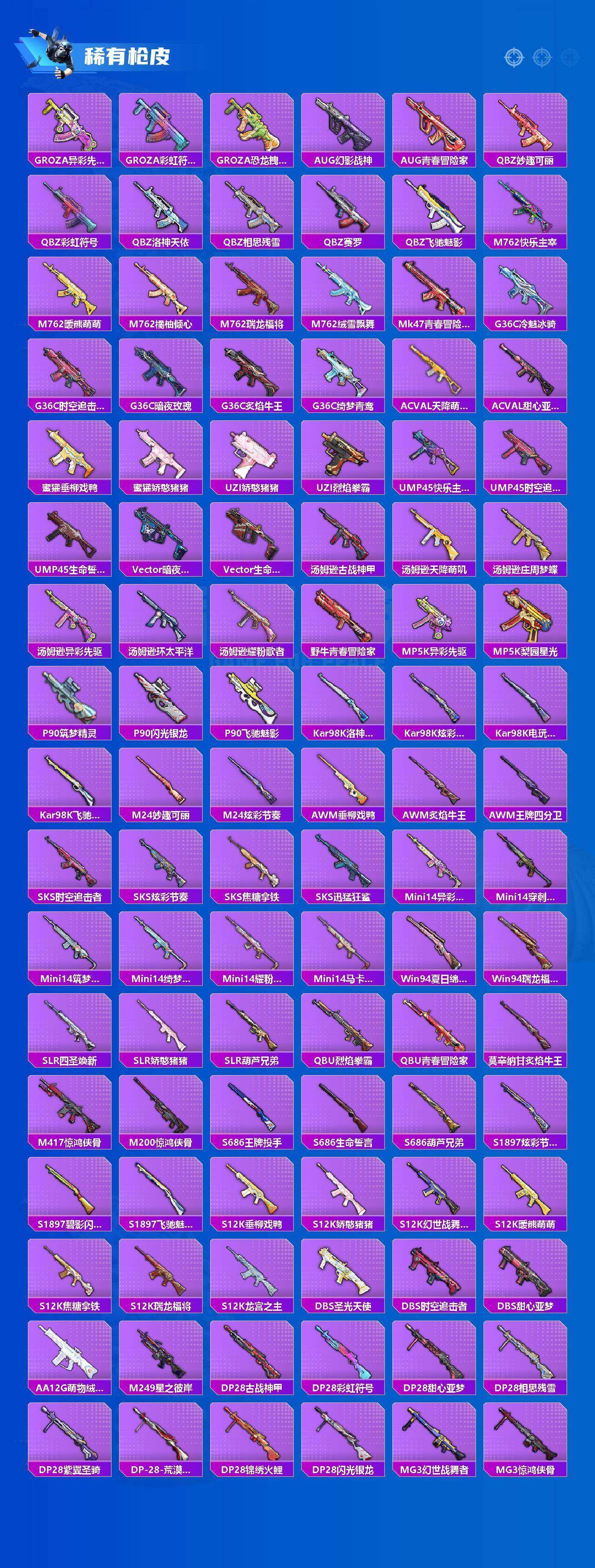 无敌战神号(23粉套6粉枪1载具)香水柠檬/烈焰拳霸/虎啸骄阳/炙焰赤龙/暗夜玫瑰/赛罗闪耀型/林间仙鹿/山涧鹿灵/海盐物语/恐龙拽拽/庄周梦蝶/绚丽摇曳/炙焰牛王/圣光天使/妙趣可丽/闪光银龙/复仇流浪者/暖熊萌萌/绒雪飘舞/傲雪凌霜/霞光圣骑/闲梦青缨/蔷薇星/M16A4葫芦兄弟六级/M4暖熊萌四级/GROZA焦糖拿铁四级/M762冷魅冰骑七级/SLR暗夜玫瑰五级/玛莎拉蒂蓝/HP7374-