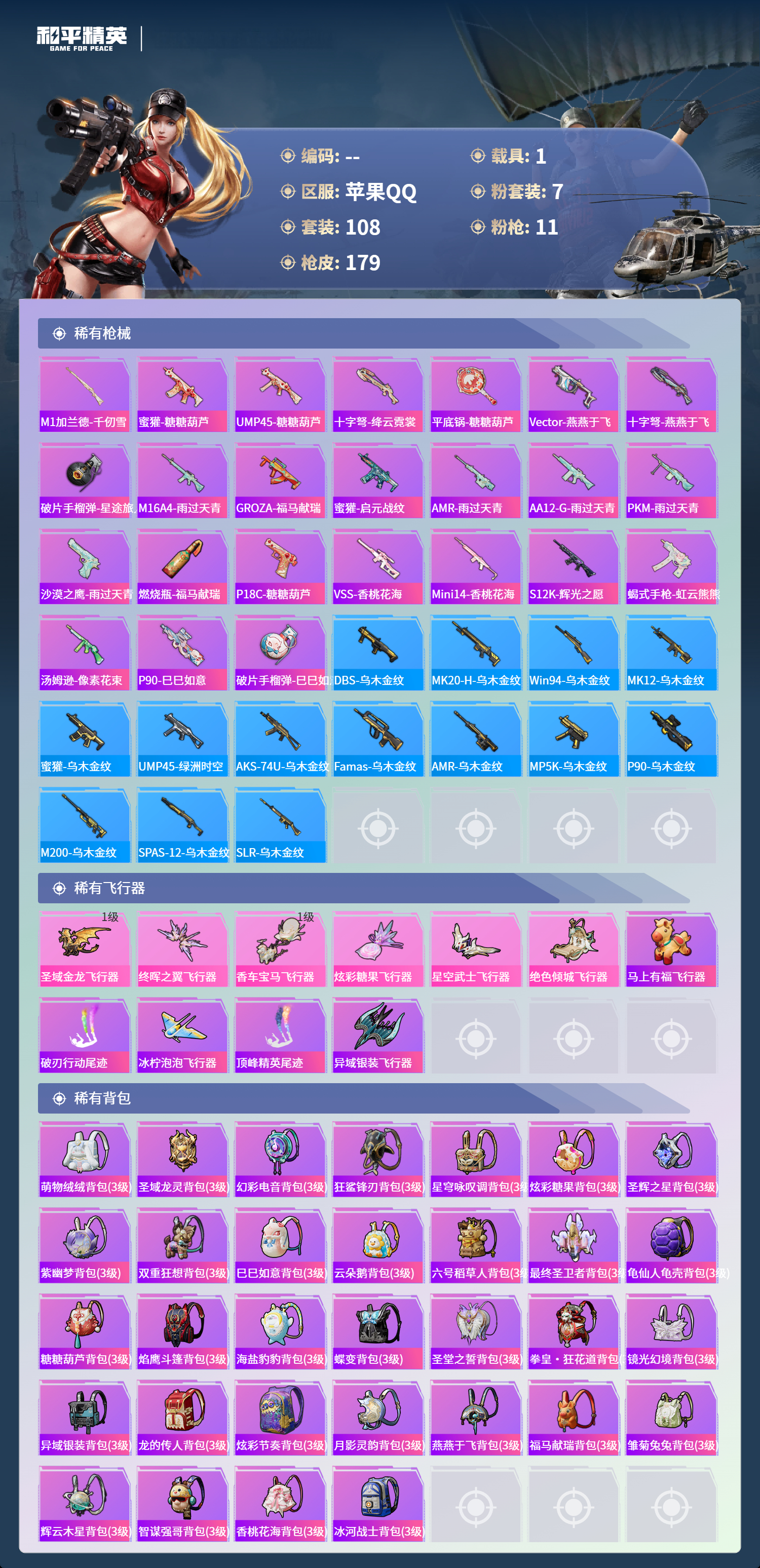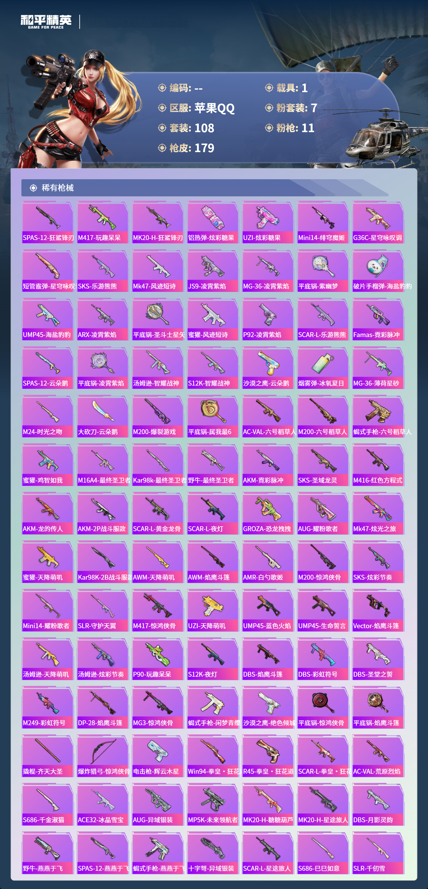 9王牌印记-1红装-7粉装-11特效枪-1载具