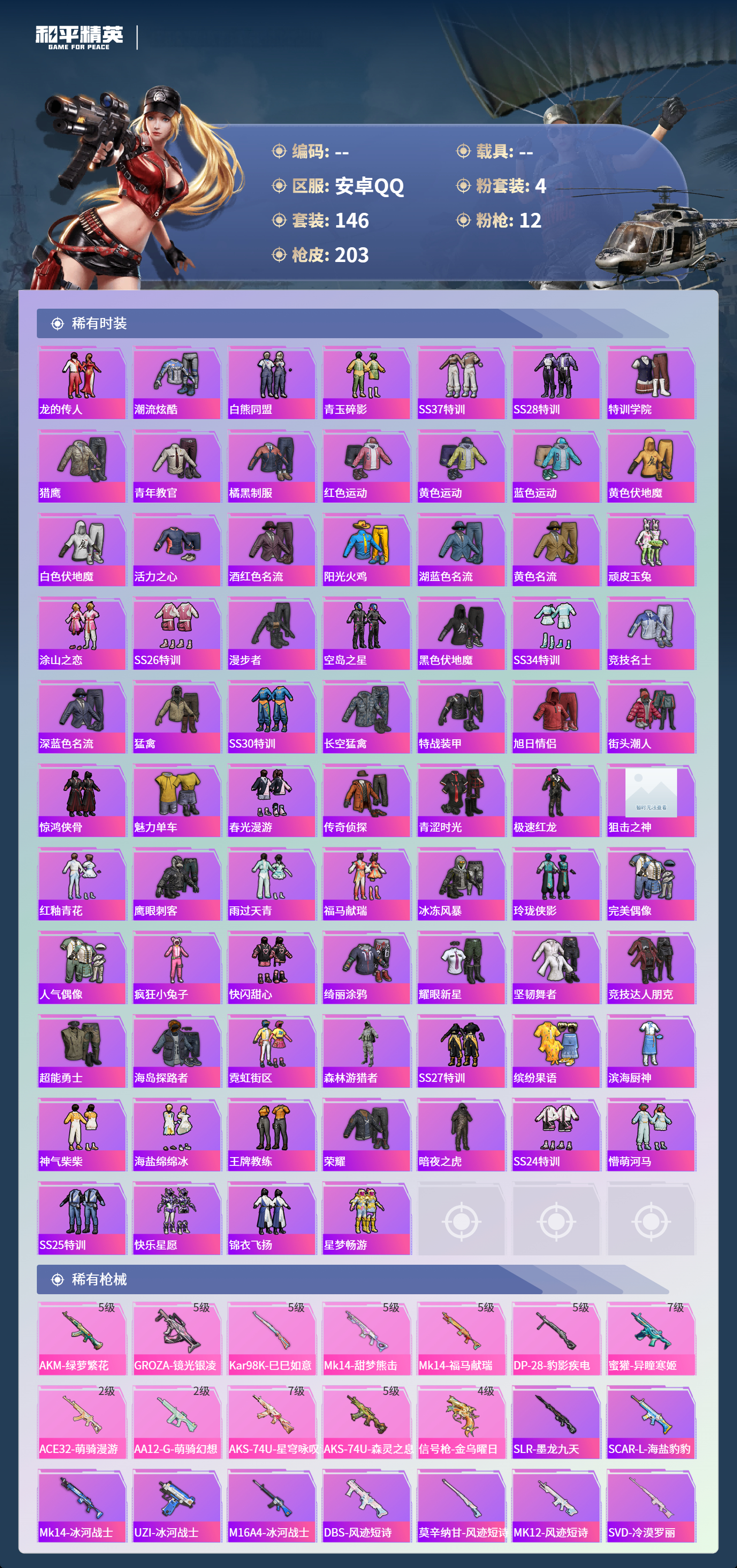 安卓手Q-14王牌印记-4粉装-12特效枪-58983热力值-14