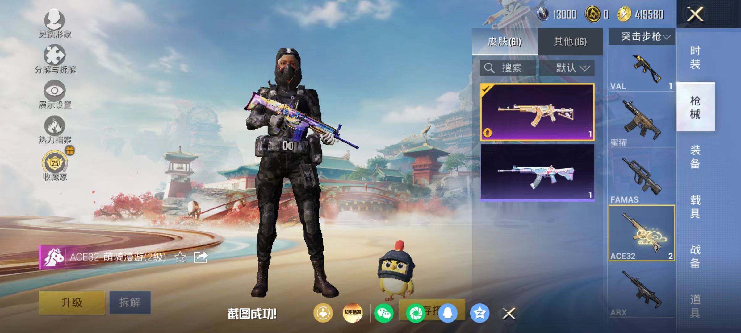 40套装/枪械5/装备62/战备37/王牌印记1/热力值16531/二级ACE