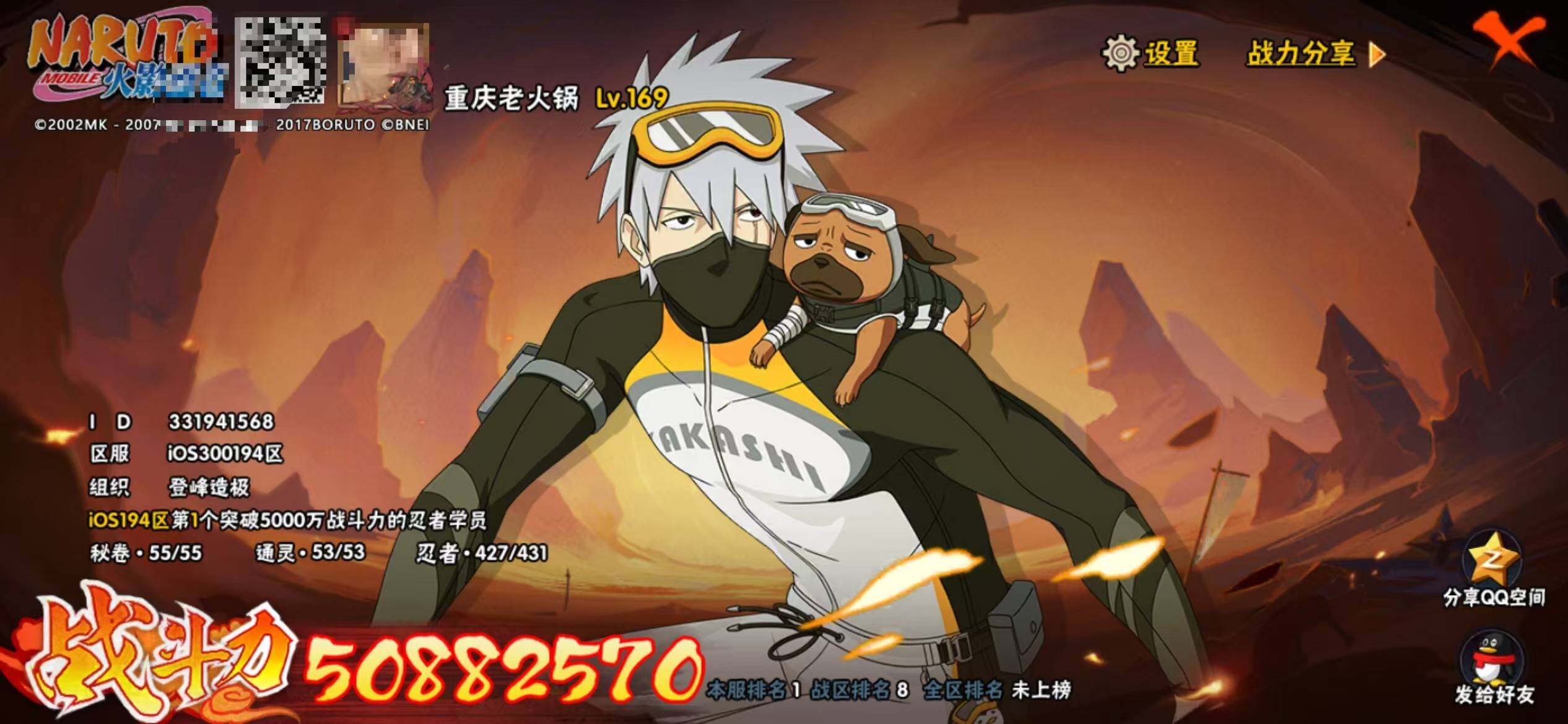 氪金23万-5088W战力-590万高攻-57s109a-本服第一,战区第八,11个五星S-魅力79级-全时装--绝版妙木山-全主场景-11个名片-21个传承奥义-胜负已分入场特效一堆-4万金币-通灵都进阶