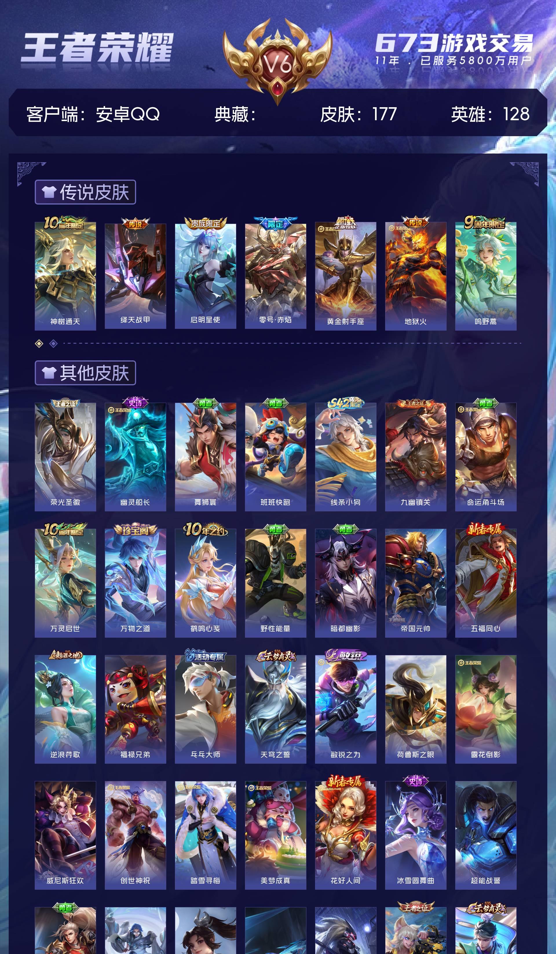 V6 皮肤177 英雄128 永恒钻石 传说7