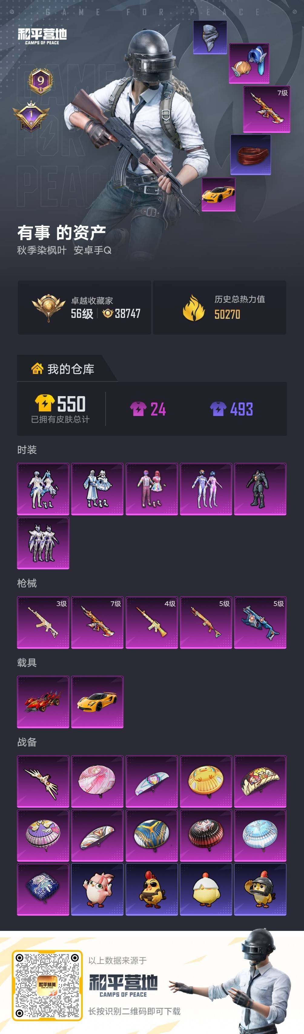 【特价出售/店主推荐】安卓 手Q-6粉装-5特效枪-2载具-1粉色飞行器-50270热力值-9王牌印记-126套装-152枪皮【热门品类】:粉装-梦幻火箭,套装-浪漫天命,套装-都市猎人,角色-军刀雅典娜,套装-龟仙人,套装-暗影哥特【粉色套装】:粉装-天使彩虹糖,粉装-梦幻火箭,粉装-紫电风暴,角色-复仇流浪者,粉装-傲雪凌霜,粉装-未来歌姬【粉色枪皮等级】:M16A4-垂柳戏鸭(四级),M4