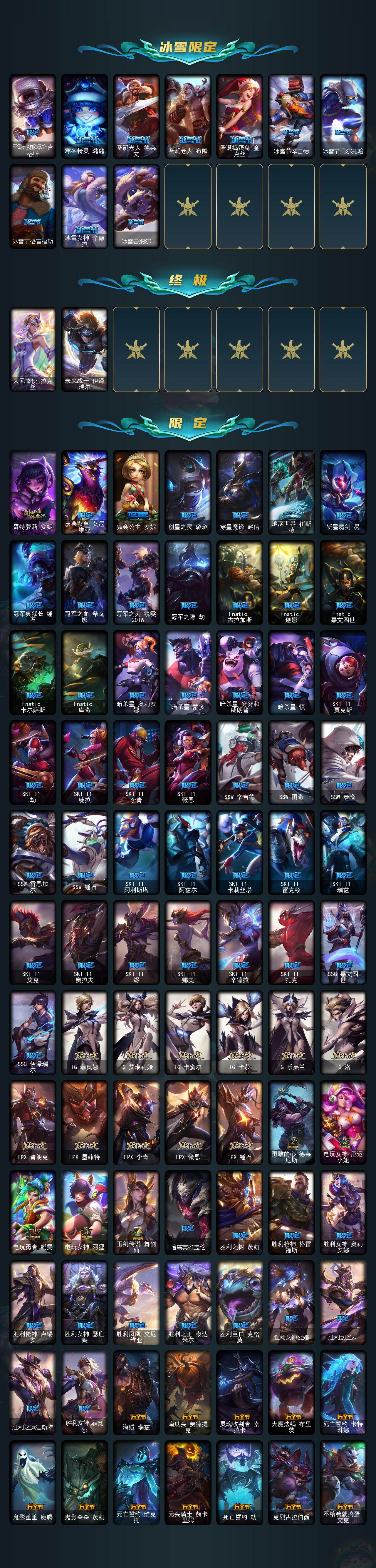 【YX7】未定级段位-172英雄-900皮肤-334炫彩-2终极-17神话-188限定-77传说-210史诗