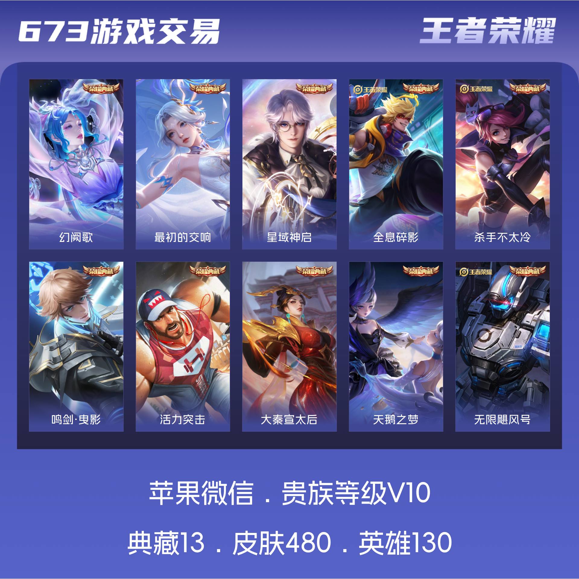V10苹果微信女号,130英雄全满,480皮肤,14个荣耀典藏,