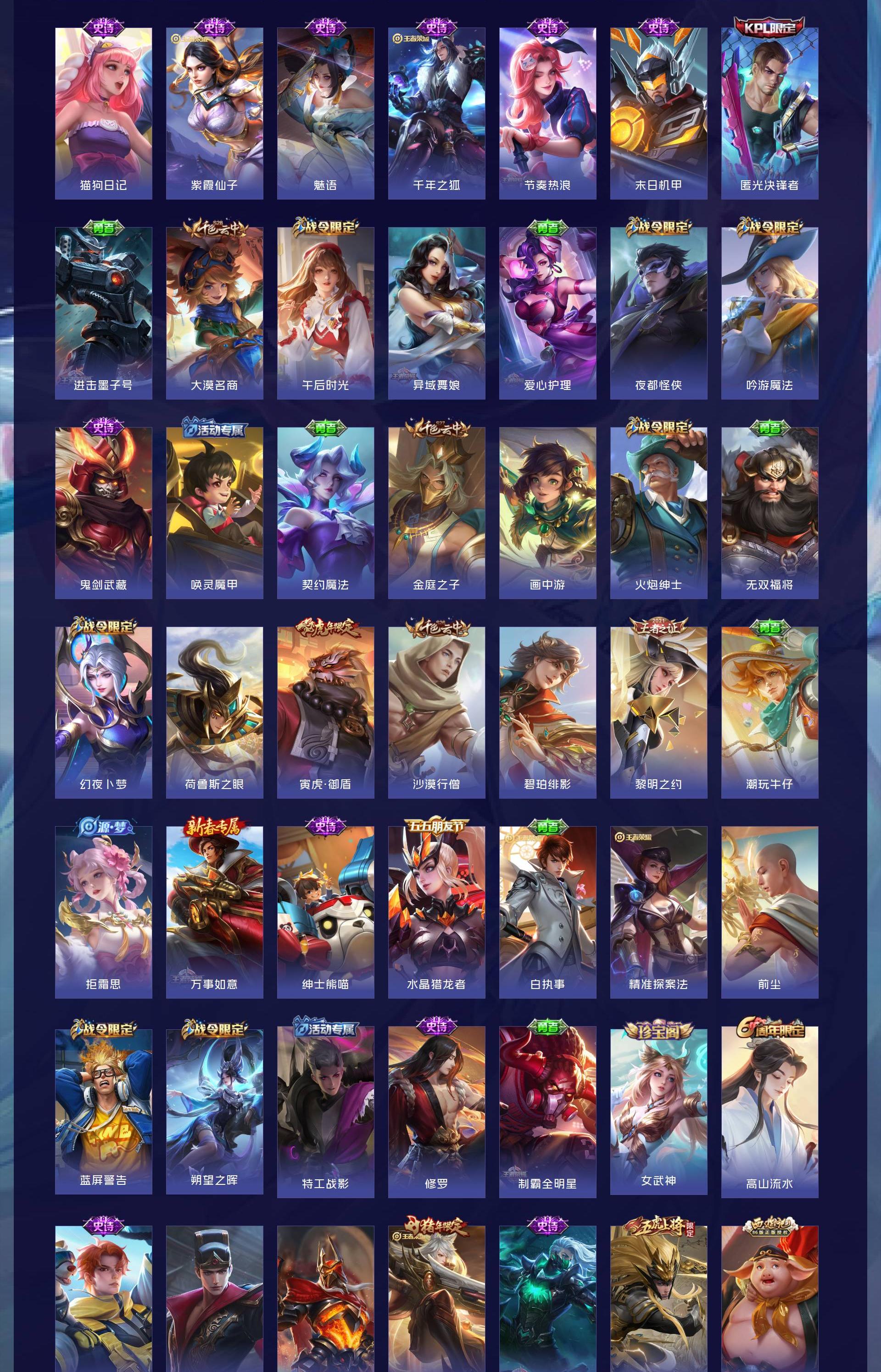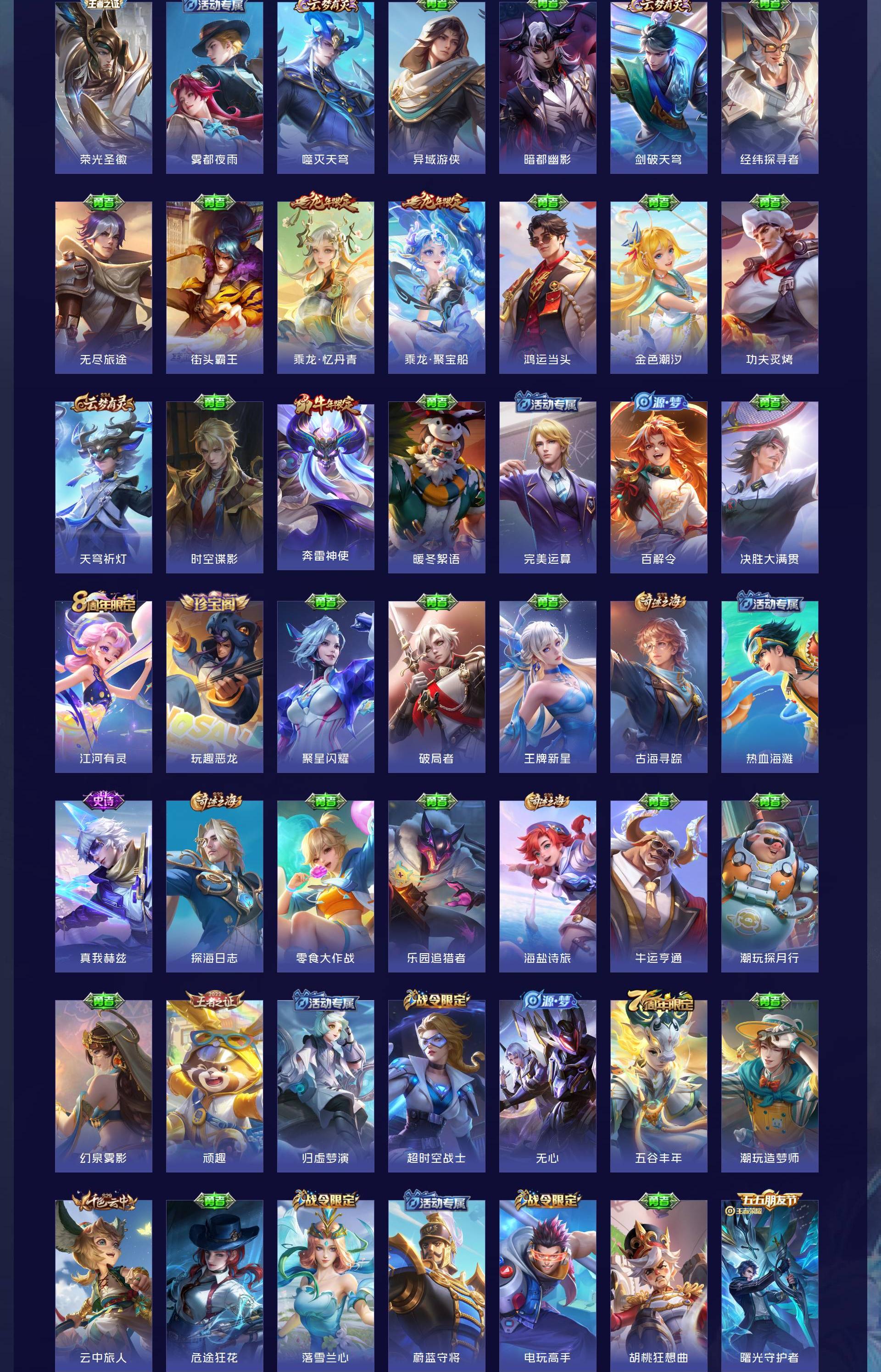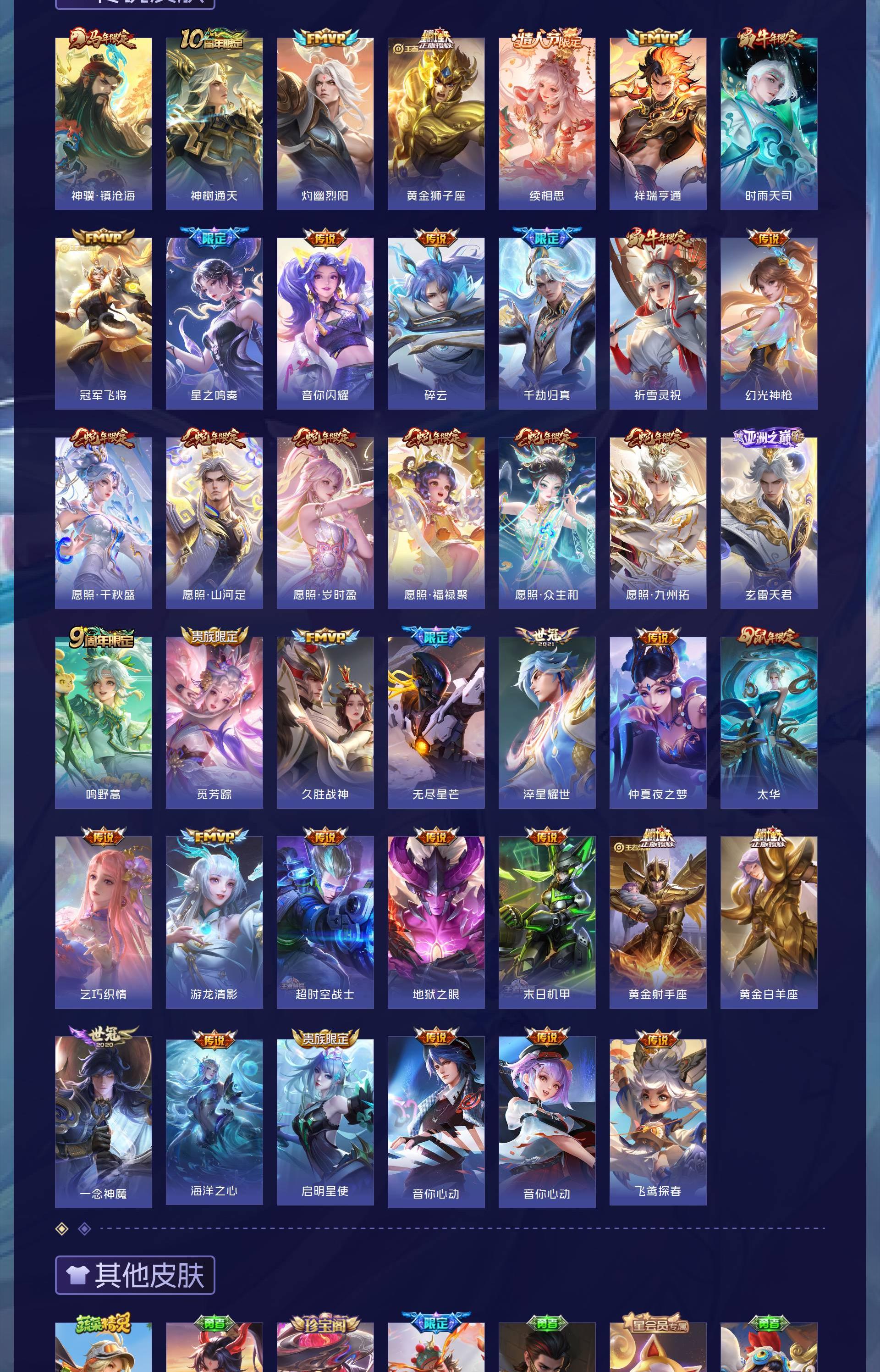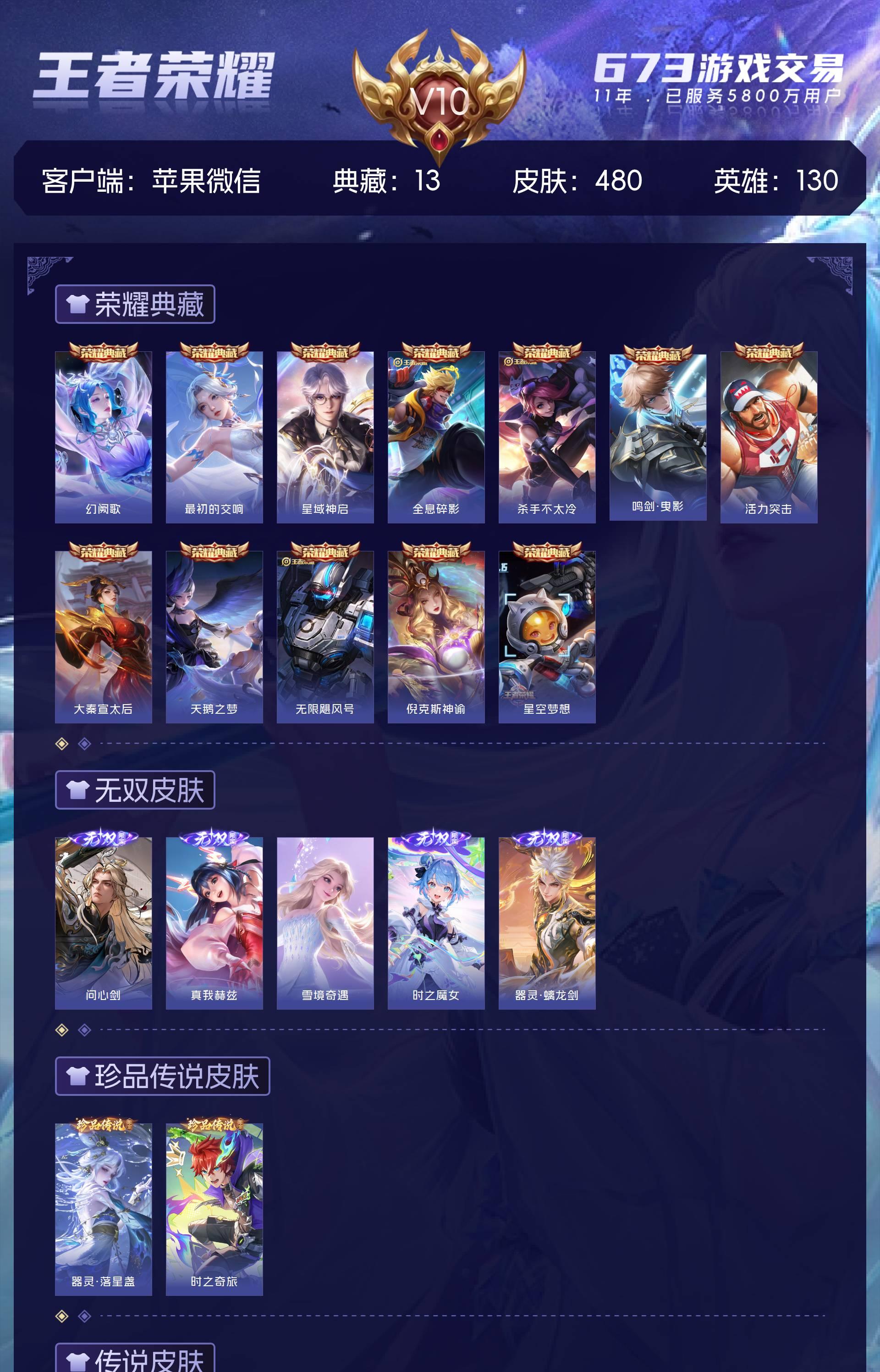 V10 皮肤480 英雄130 至尊星耀 荣耀典藏13 无双皮肤5 珍品传说2 星传说4 传说41