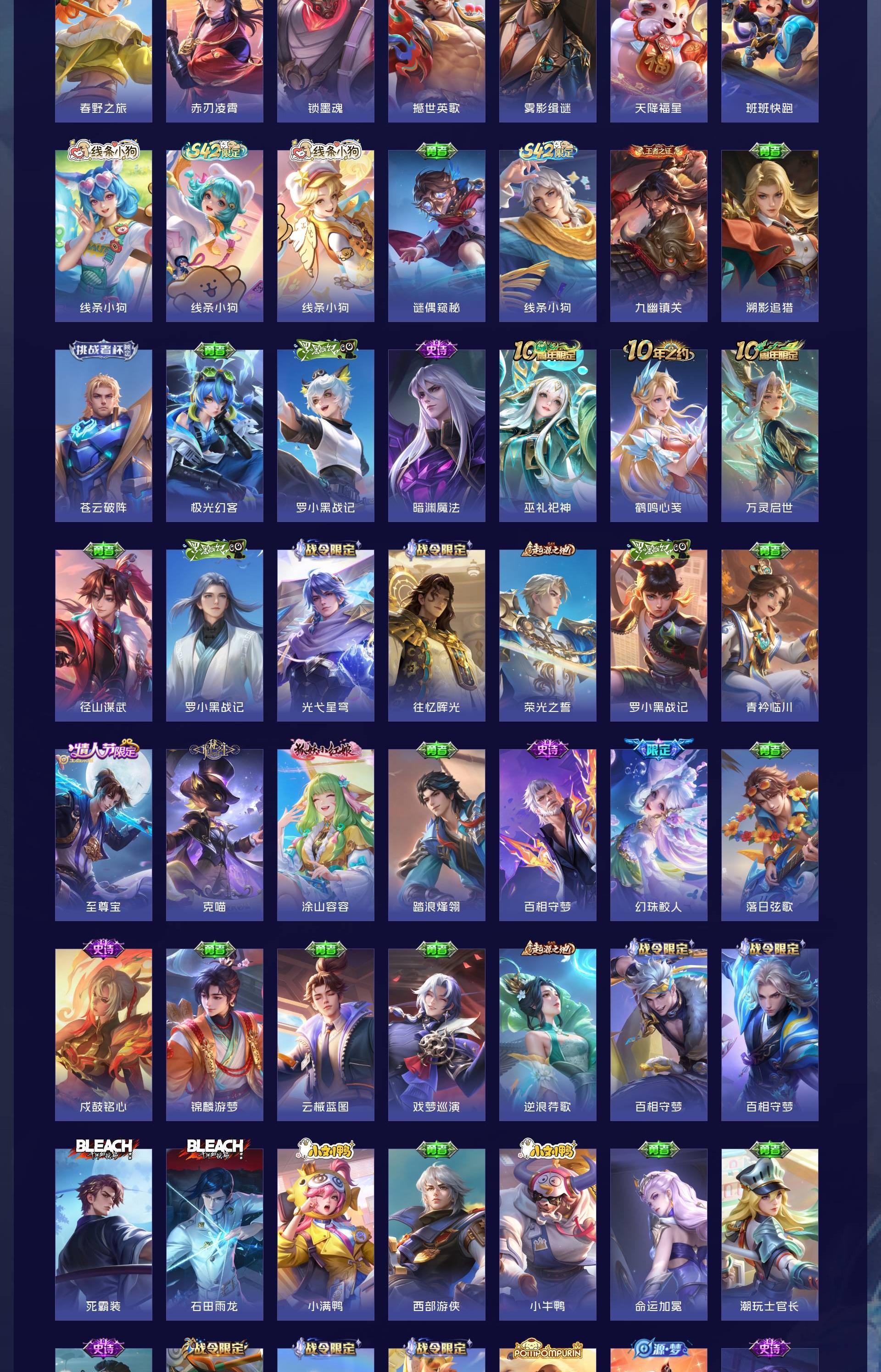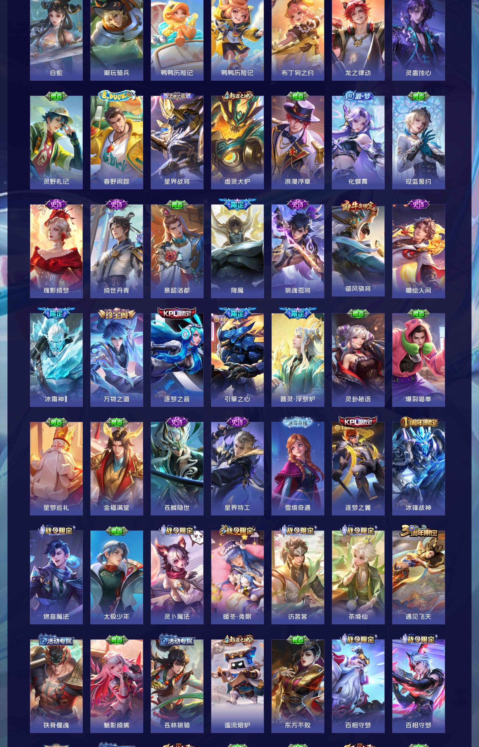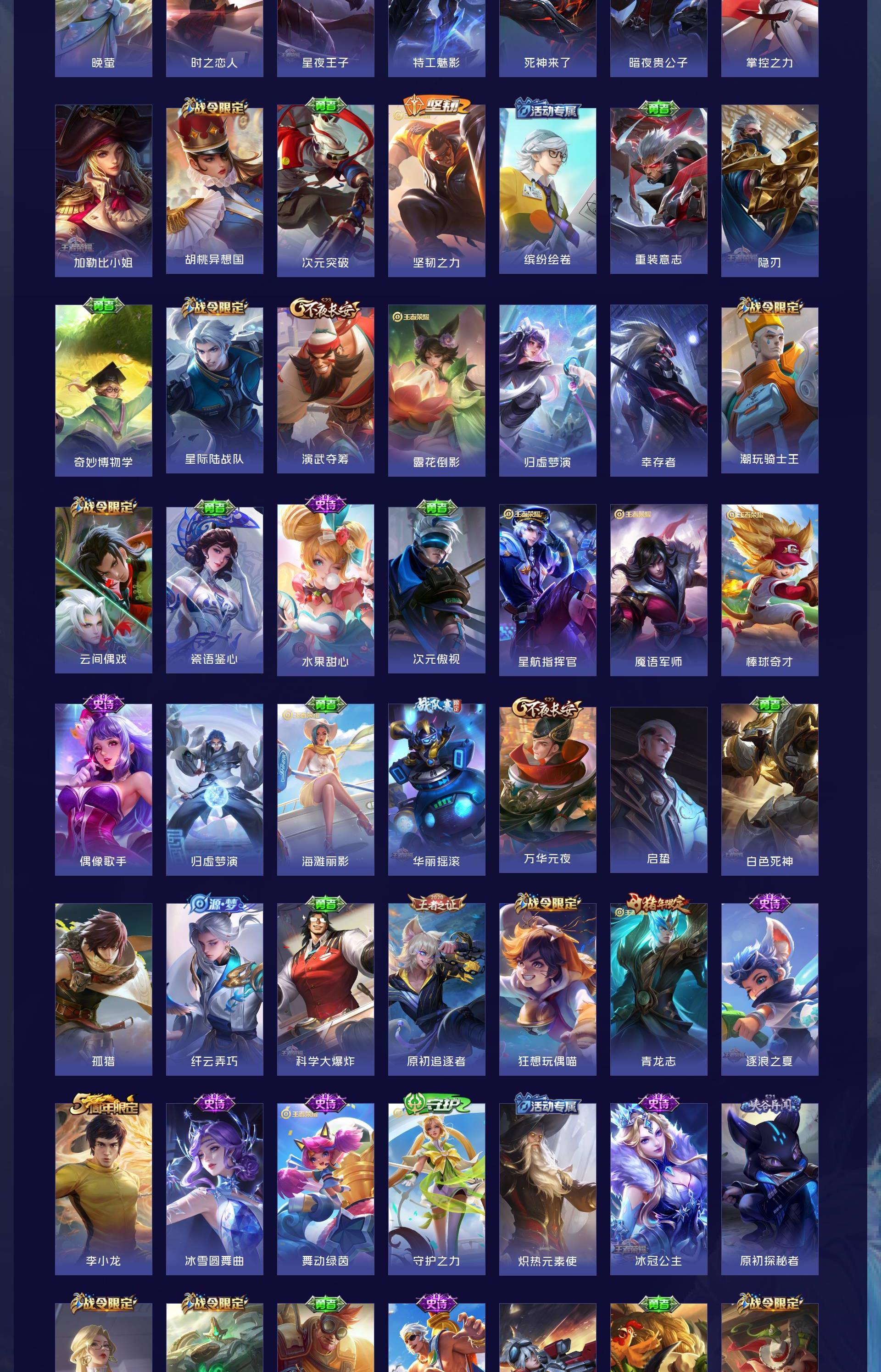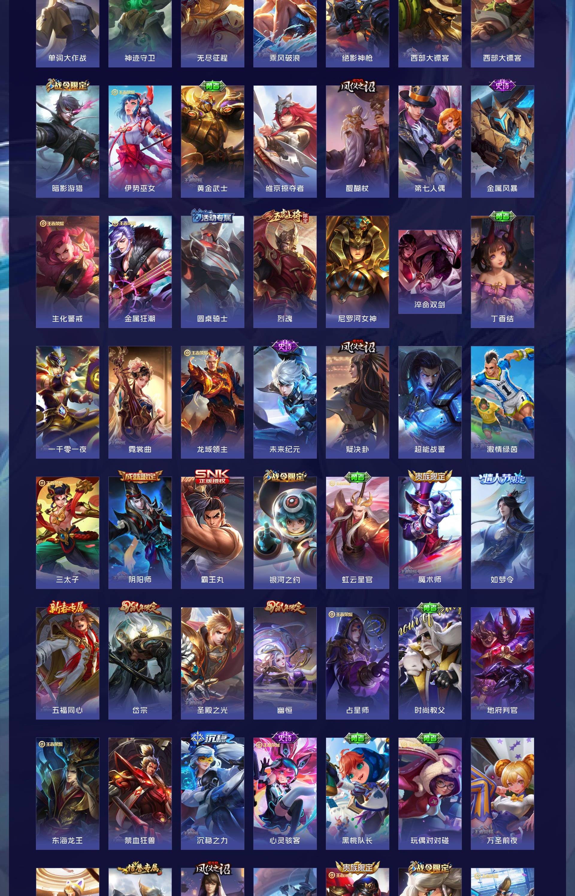 V10 皮肤480 英雄130 至尊星耀 荣耀典藏13 无双皮肤5 珍品传说2 星传说4 传说41