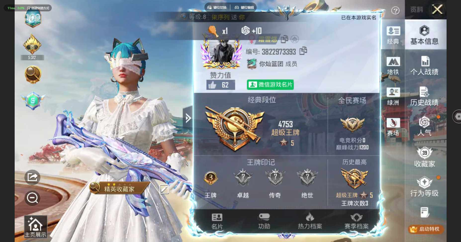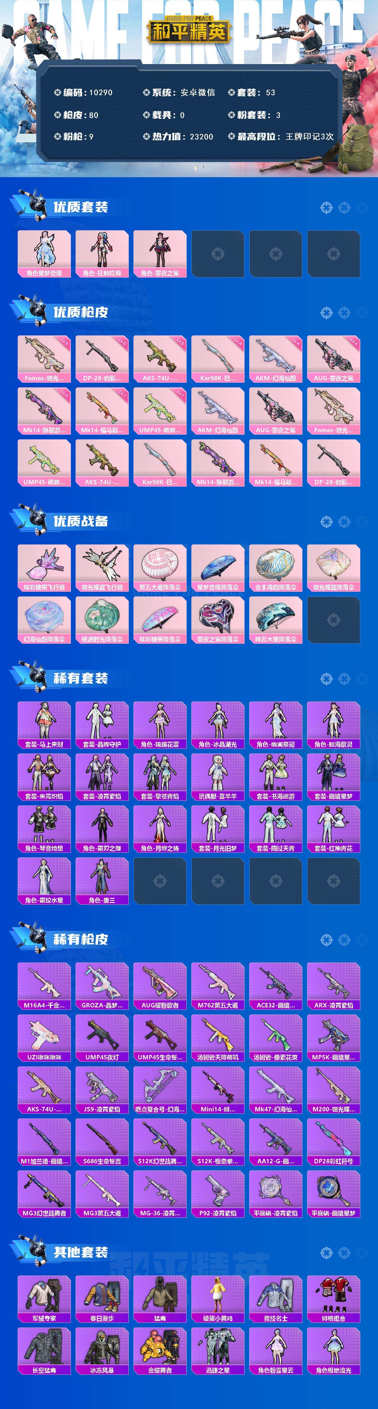 女小丑!安卓 微信-3粉装-9特效枪-0载具-2粉色飞行器-23200热力值-3王牌印记-53套装-80枪皮