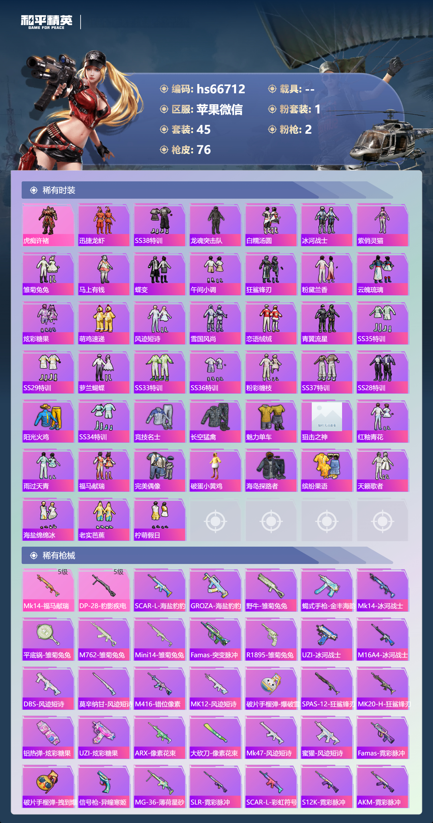 苹果微信-4王牌印记-1粉装-2特效枪-19325热力值-45套