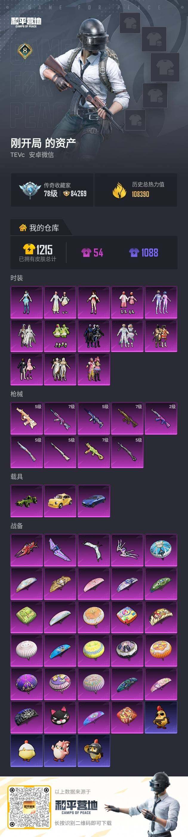 缤纷油彩!安卓 微信-13粉装-9特效枪-3载具-4粉色飞行器-108390热力值-8王牌印记-240套装-331枪皮